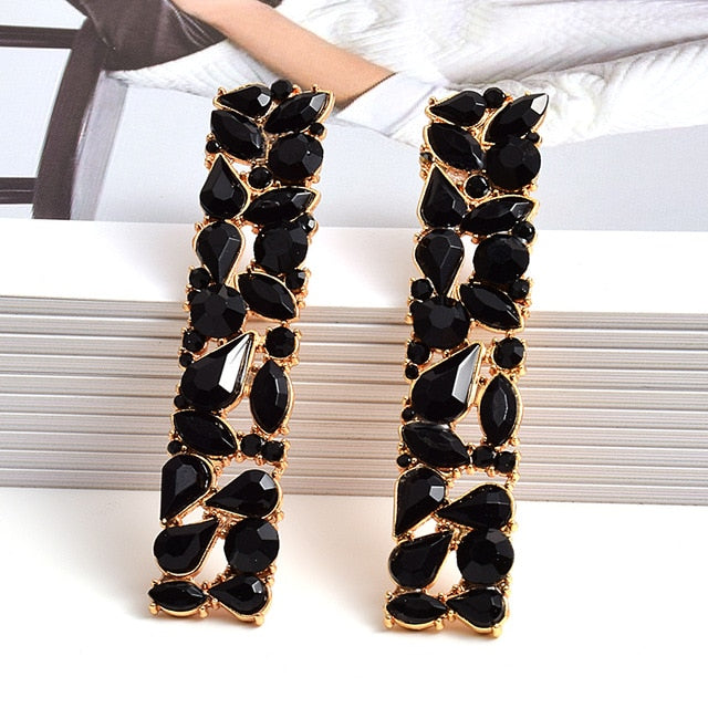Long Rectangle Rhinestone Stud Earrings With Zinc Alloy Material
