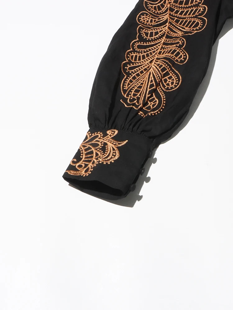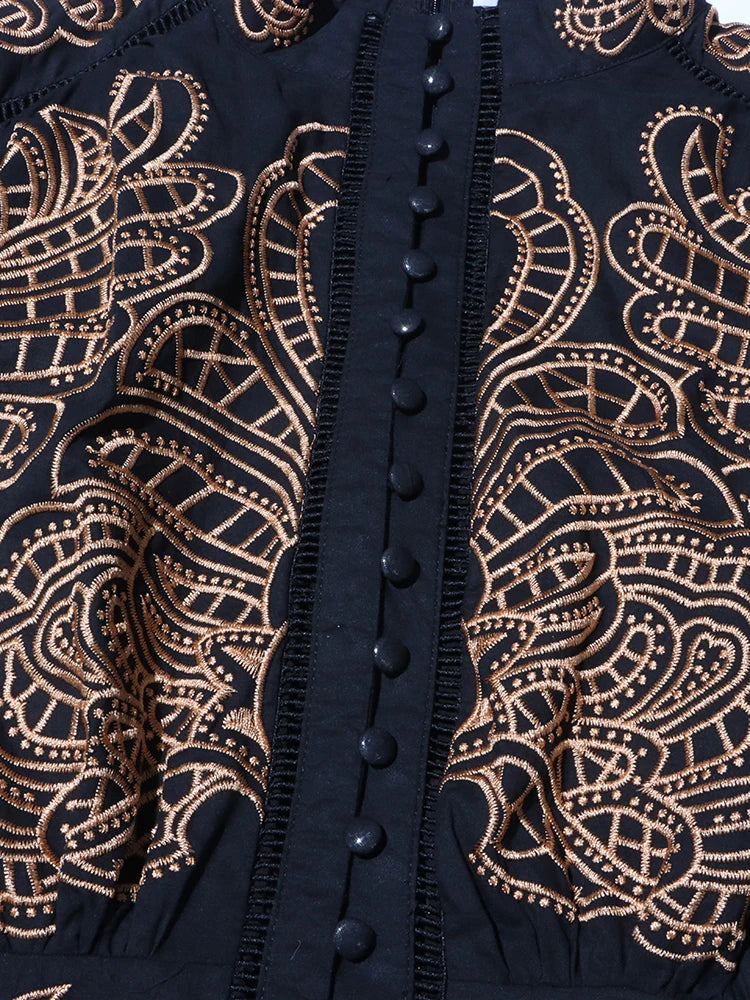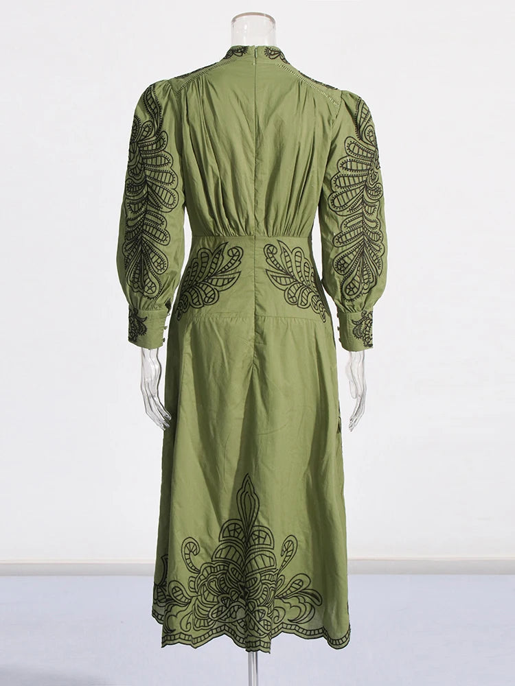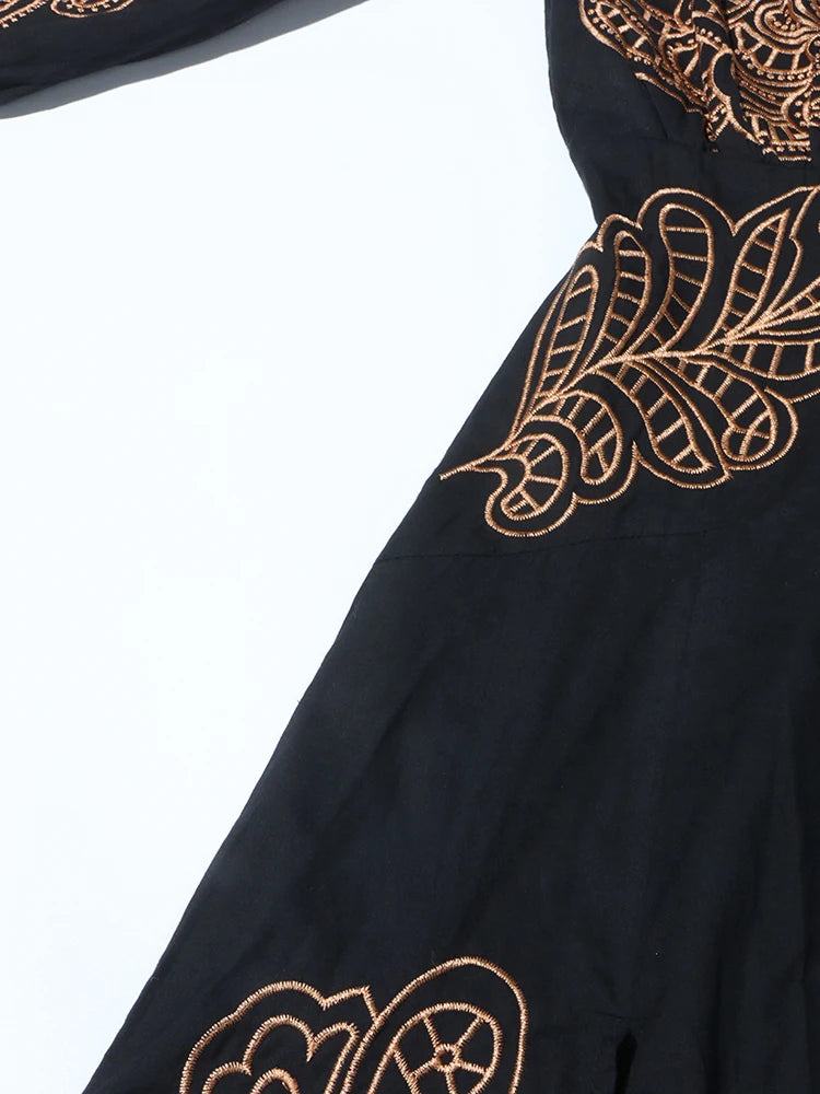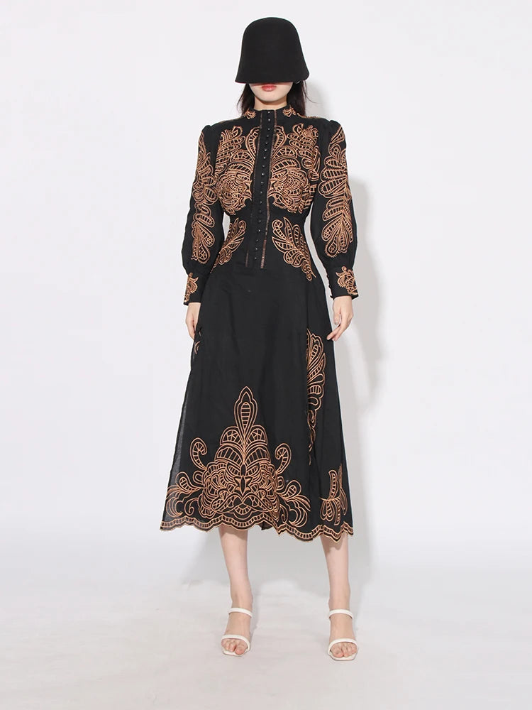 This stunning midi dress stands out with its lantern sleeves and intricate embroidery. Perfect for casual occasions with an Empire waistline and full sleeves for added style and coverage. Make a bold statement with the Call It Torture Midi Dress!