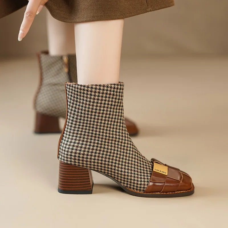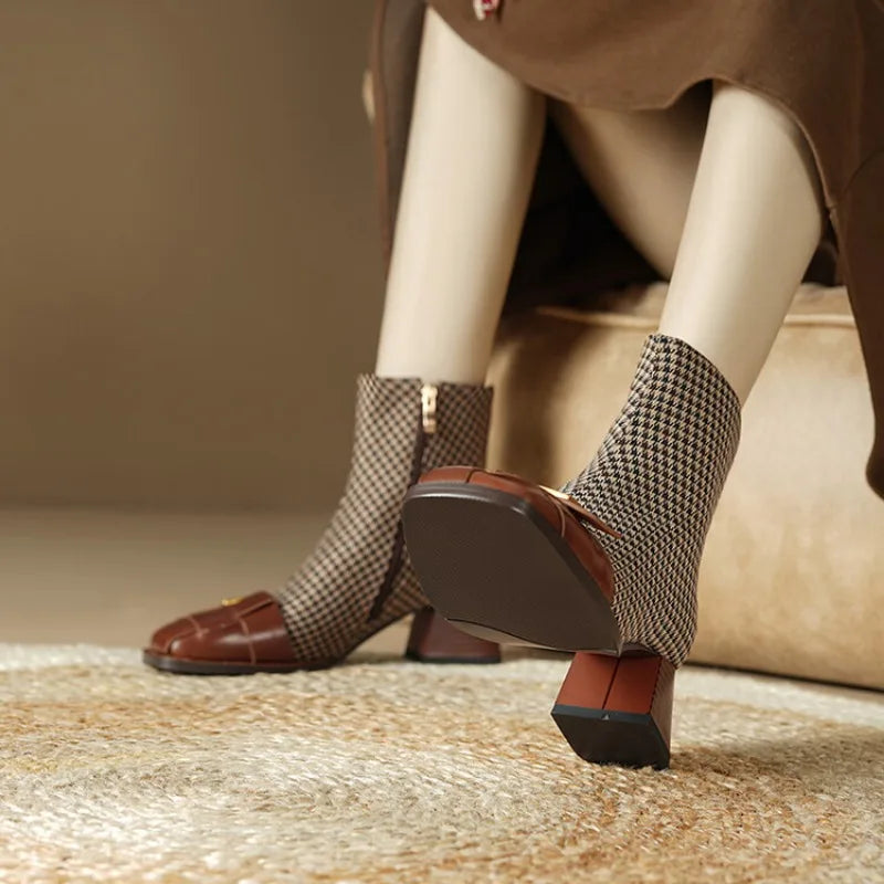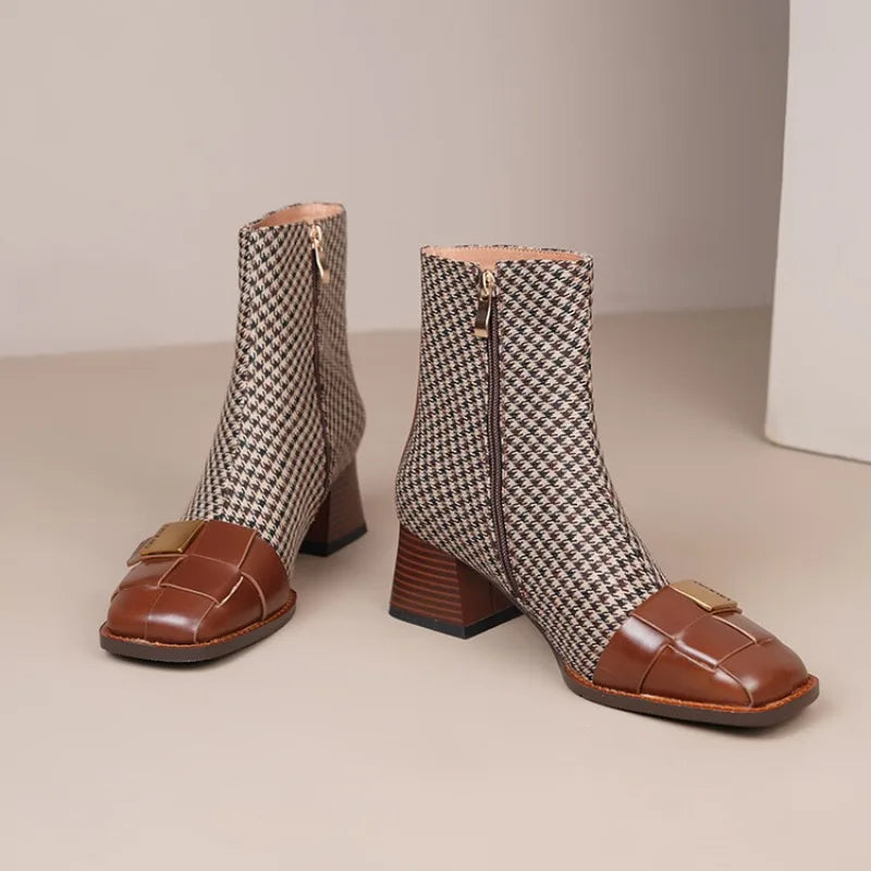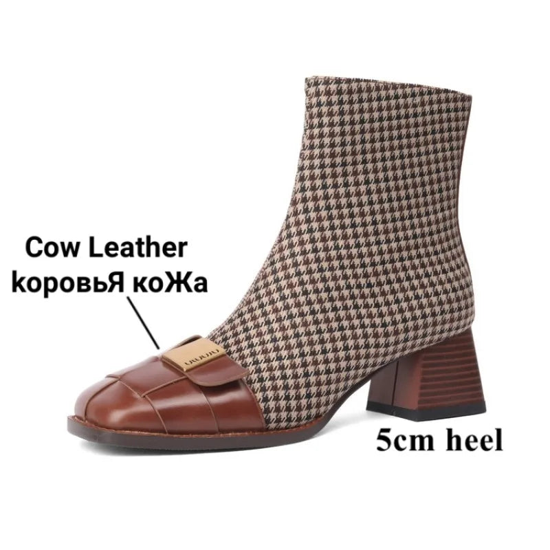 Step out in style with Pop It All Night Ankle Boots. Made with genuine cow leather and lined with soft pigskin, these boots are not only fashion-forward but comfortable. The square heel provides a stable and trendy look, while the ankle height and square toe make for a versatile piece that can be dressed up or down. Perfect for all-day wear, these boots are a must-have for any wardrobe.