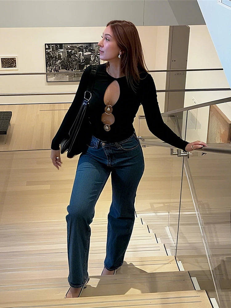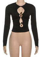 The Call Me Pretty Crop Top features daring hollow-out details and high-stretch elasticity for a bold, confident fit. Crafted from a comfortable blend of polyester and spandex, it molds perfectly to your shape, making every move effortless and eye-catching. Elevate your style with this striking statement piece.