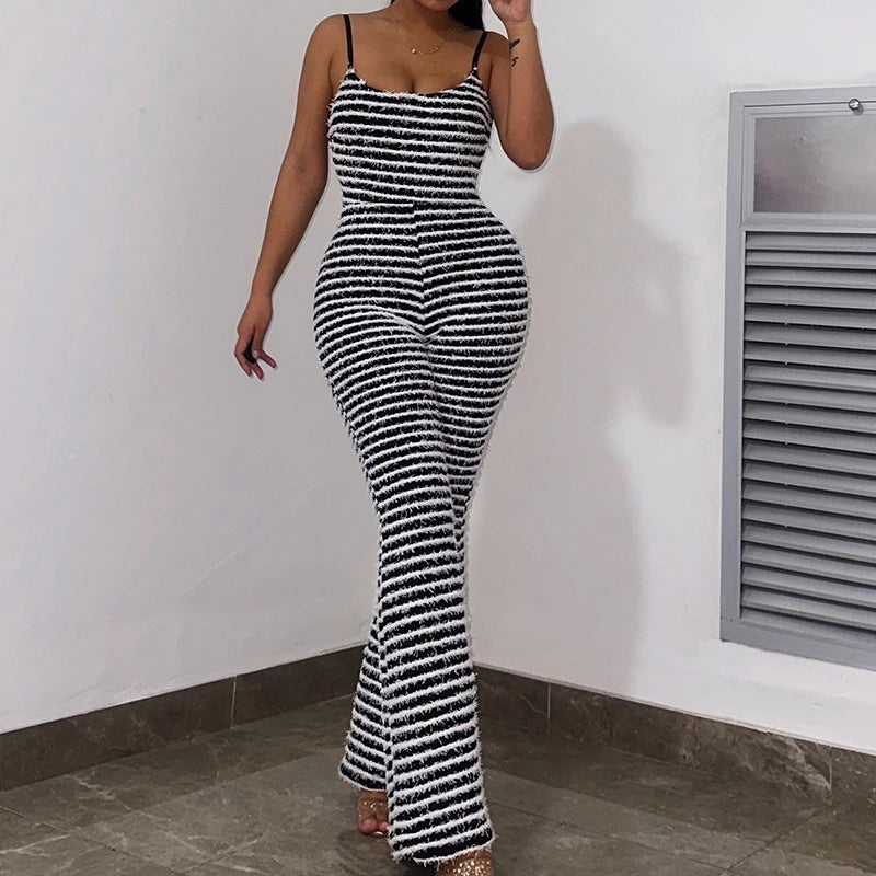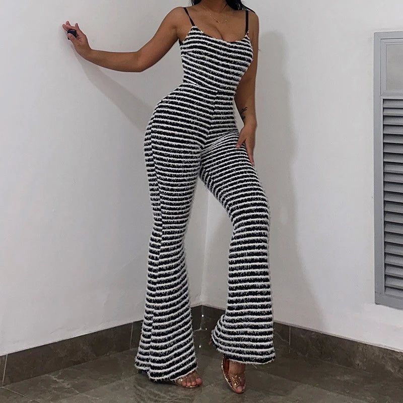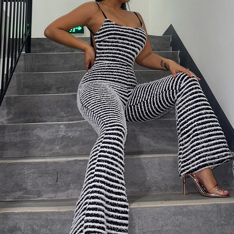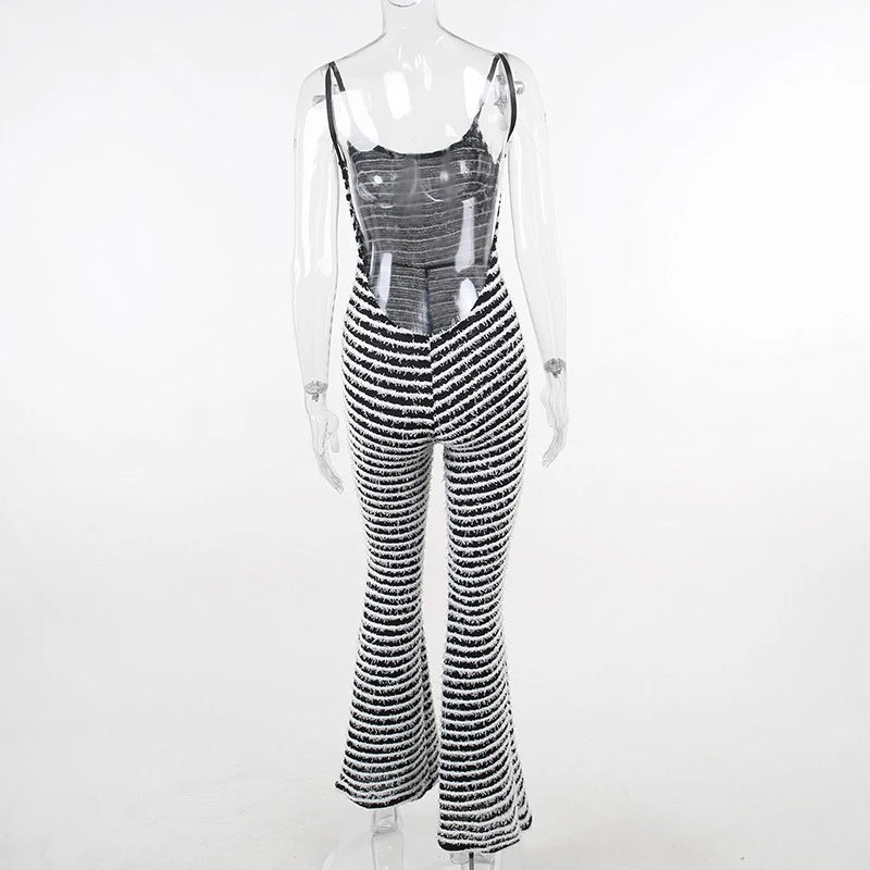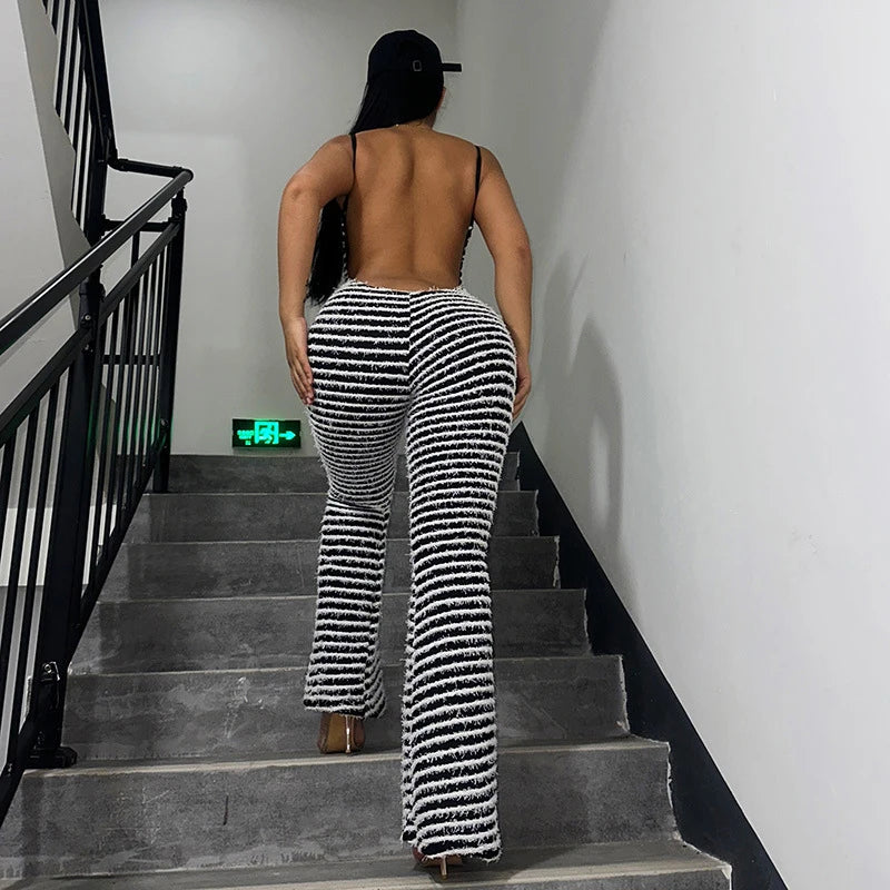 Make a fearless entrance in the Covered In Sinners Jumpsuit, crafted from smooth polyester with bold stripes that command attention. Its backless design adds an unexpected edge, revealing just the right amount of skin. This jumpsuit combines comfort and confidence for those ready to own every room they enter.