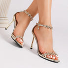 Step into the spotlight with Her Final Glow Heels Sandals—where audacious style meets undeniable glamour. Crafted from premium PU material, these sandals deliver a sleek, polished finish that commands attention. Adorned with shimmering rhinestones that catch every light, they're designed for those bold enough to make a statement.