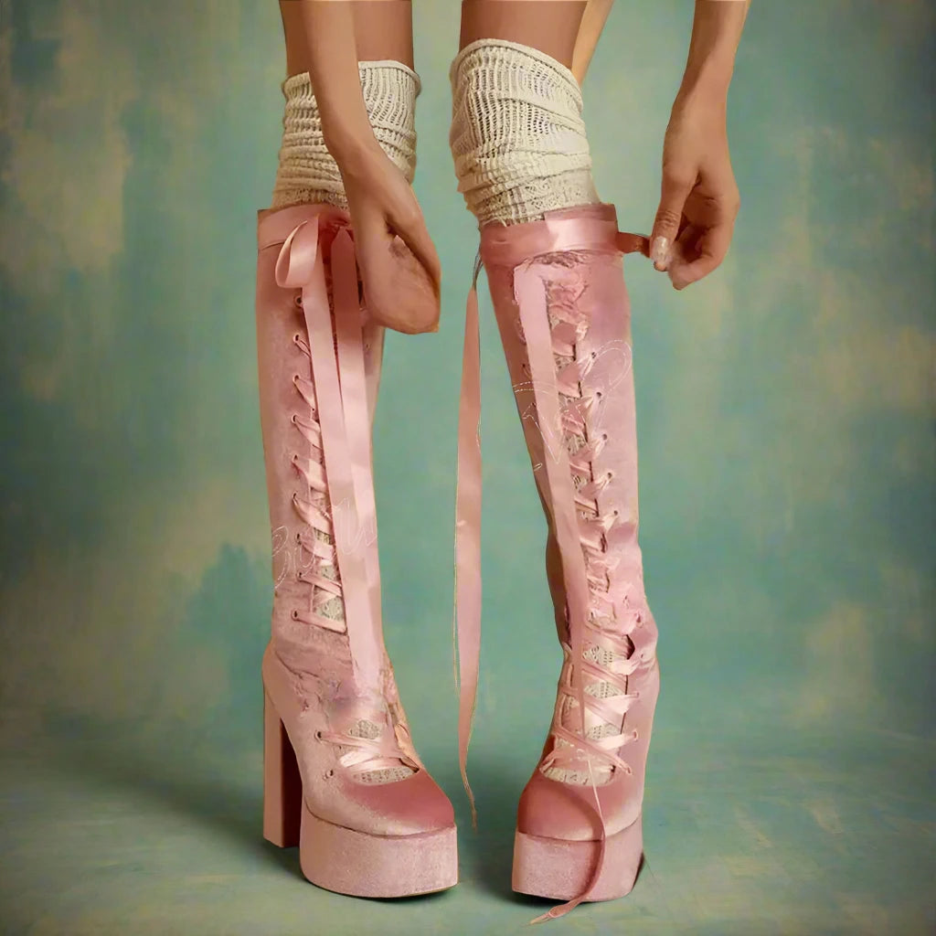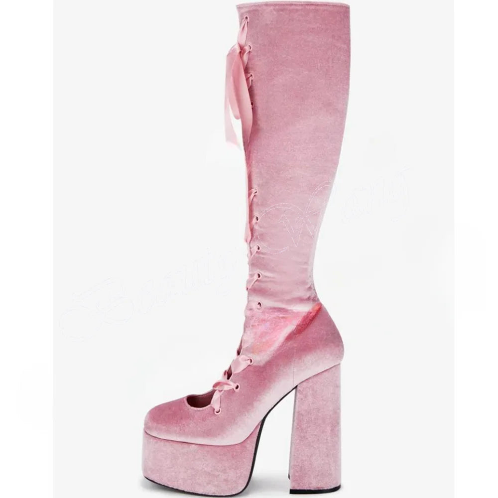 Step into a beautiful dream with these knee-high boots. Made from faux suede and featuring a rubber sole, they provide both style and comfort. The square heel and platform add a touch of elegance to any outfit. Indulge in the ultimate dreamy footwear experience.