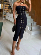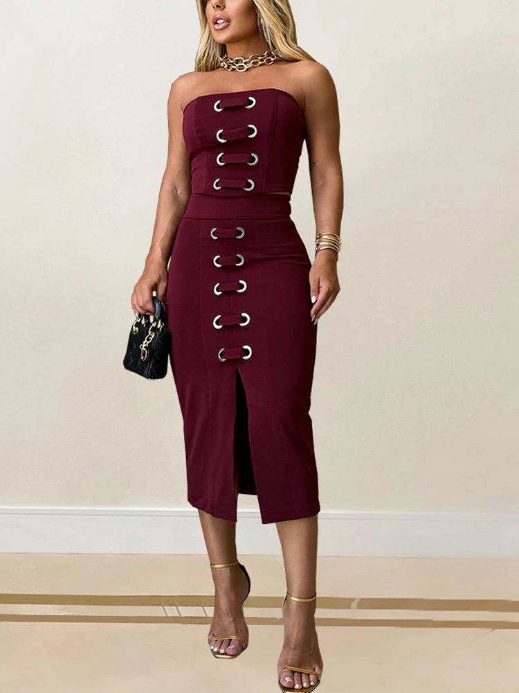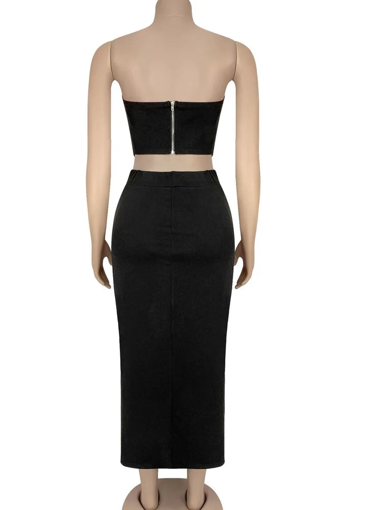 Turn heads with the Naughty Nectar Skirt Set, a daring duo of a sleek short top and matching skirt. This outfit plays with bold style and confident flair, perfect for making a statement at any night out. Embrace your edgy side and own every moment in this striking combination designed to showcase your fearless spirit.