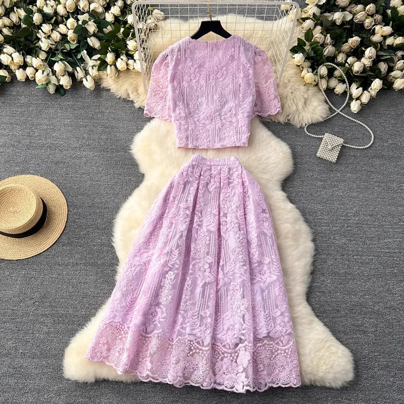 The Nebula Embrace Skirt Set is the ultimate combination of style and comfort. Made from cotton, polyethersulfone, and spandex, it offers a soft and stretchy feel. With a charming button decoration and a classic O-neck collar, this set is both elegant and versatile. Upgrade your wardrobe with this must-have set!