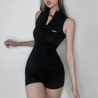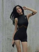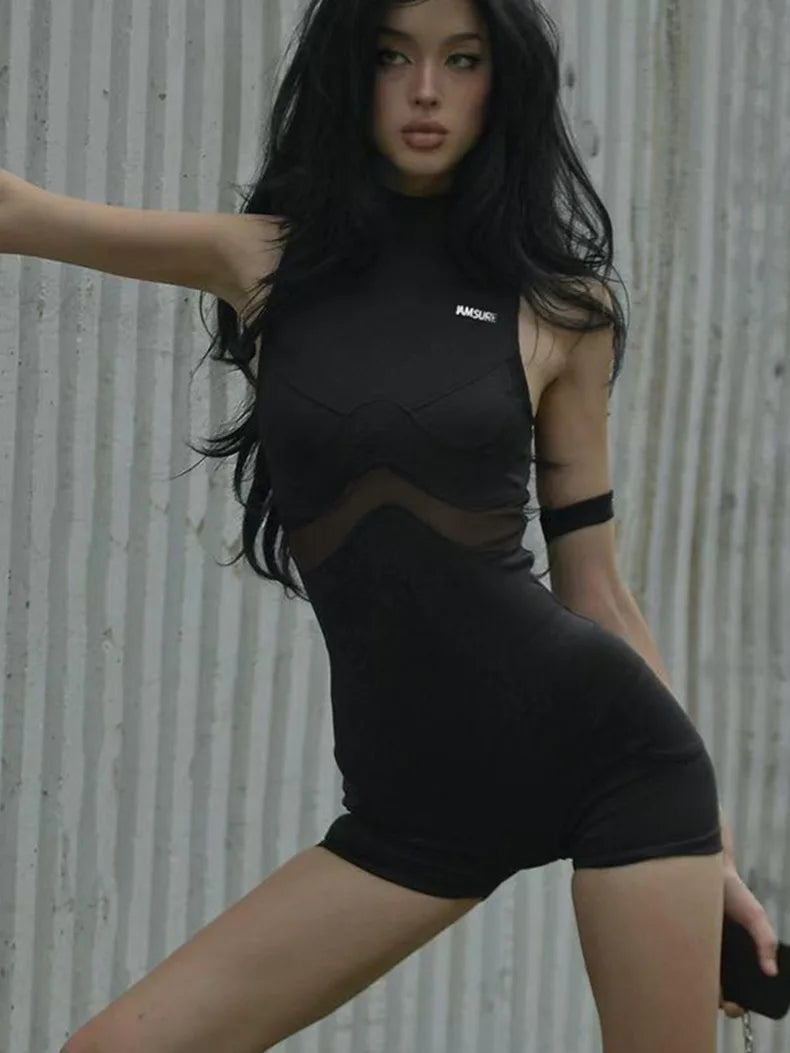 Obsidian Power Reign Romper Command the room in this sleek, form-fitting romper crafted from a premium polyester and spandex blend. The solid obsidian hue exudes confidence and edge, while the stretch fabric moves with your body for unrestricted power and comfort.