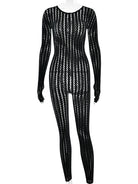 Embrace bold elegance with the Silver Whisper Jumpsuit, crafted from sleek polyester and spandex for a slim, confident fit. Its broadcloth fabric enhances durability and comfort, while the daring hollow-out decoration adds an edgy, eye-catching touch to your look. Perfect for standing out with a blend of sophistication and bold style.