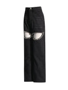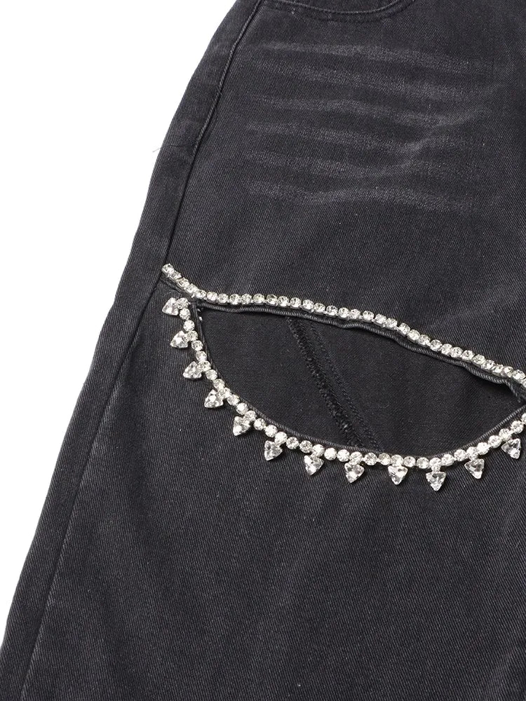 Command attention in the Throne-Born Elegance Jeans, where audacious design meets refined style. Intricate hollow-out detailing creates striking visual interest, while shimmering rhinestones catch the light with every move—perfect for those who refuse to blend in. Bold, unapologetic, and undeniably captivating, they're crafted for rebels who wear their confidence on their sleeve.