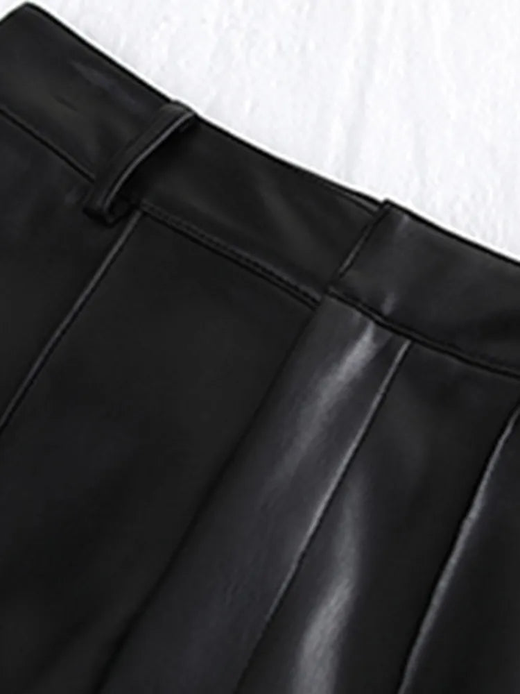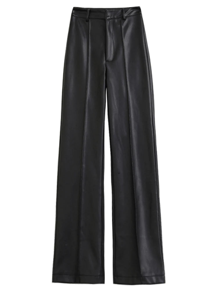 Experience cutting-edge style with these pants. Crafted with faux leather and a solid design, these pants feature a fake zipper for an elevated aesthetic. Create your outfit of the day with this timeless look.