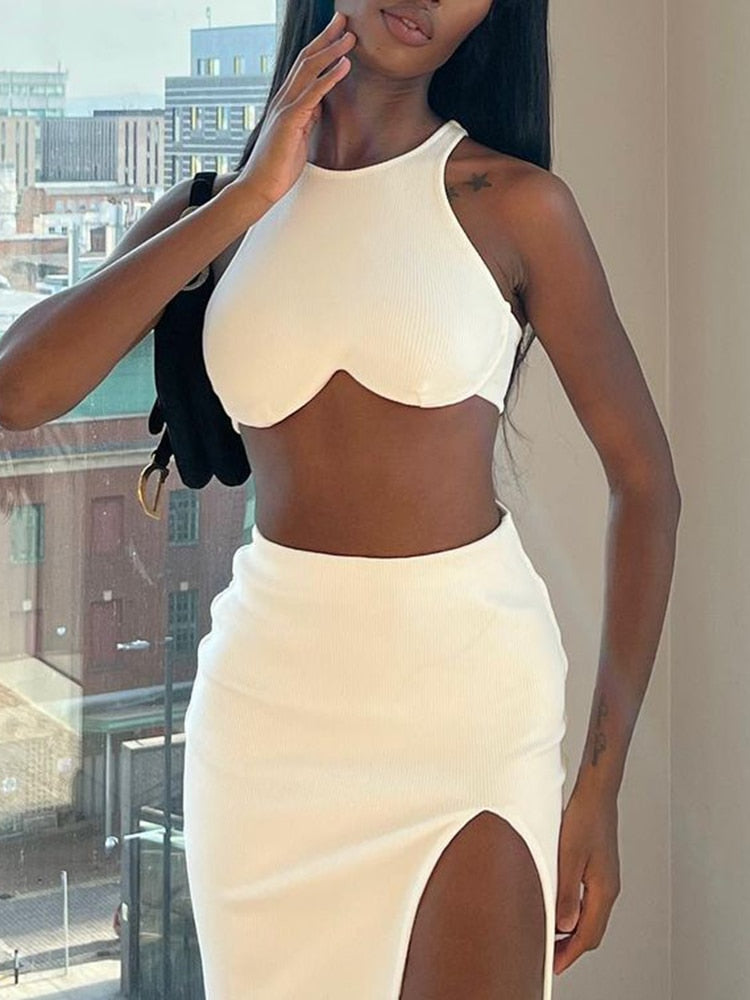 This stylish and elegant skirt set is a versatile option for any occasion. This stylish style is available in three colors option to ensure it goes with everything. The comfortable and easy-to-wear fabric is long-lasting and easy to care for. Stylish and comfortable, this skirt is perfect for any occasion.