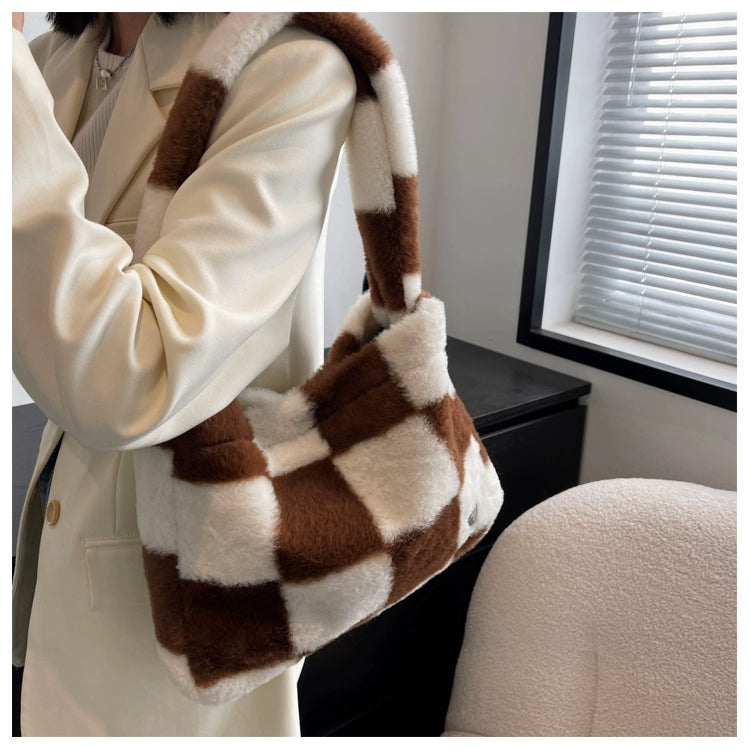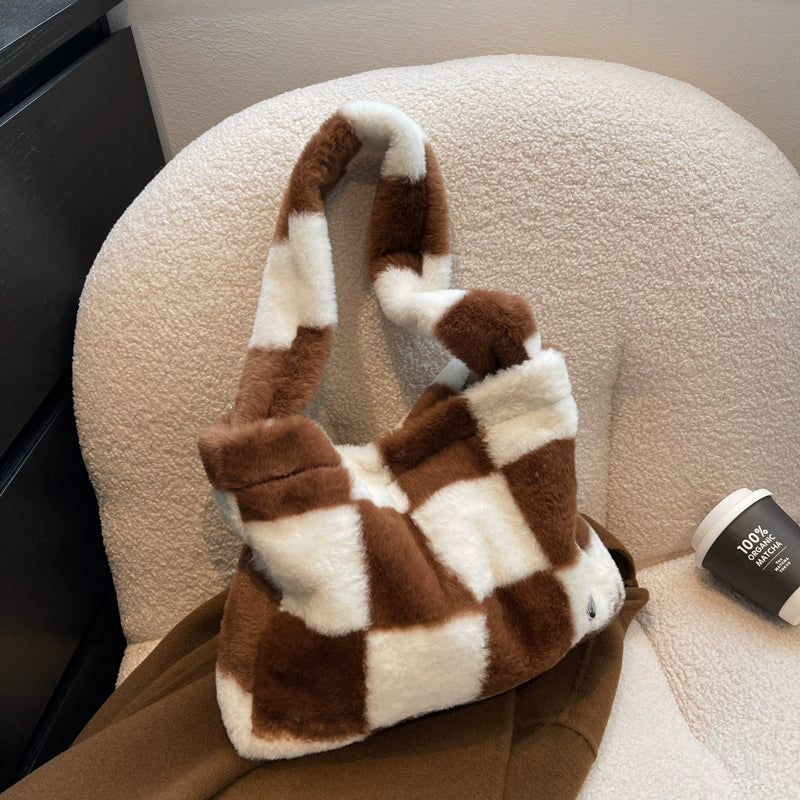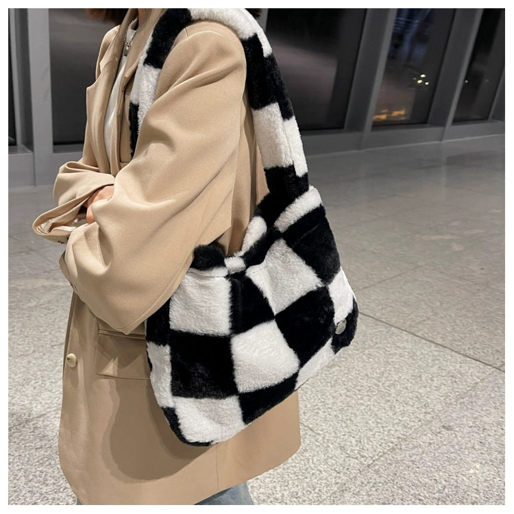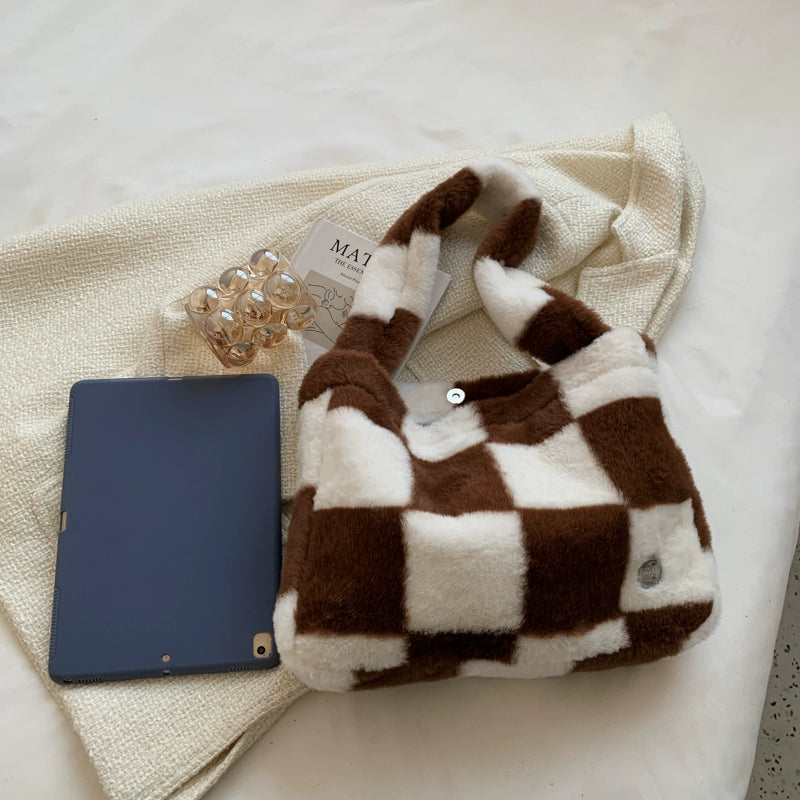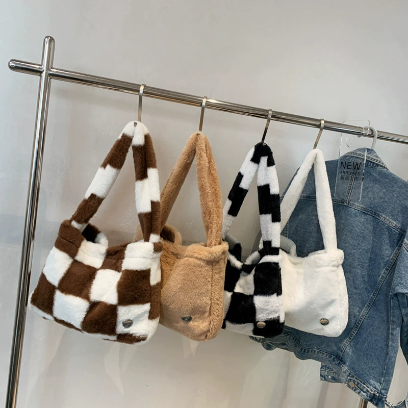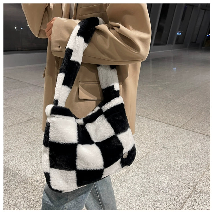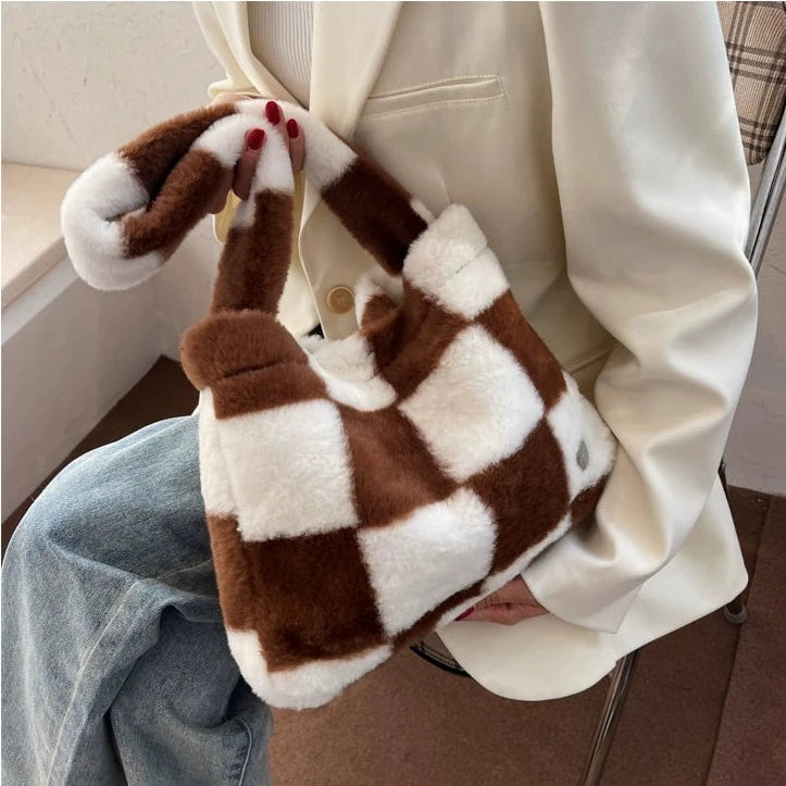This Can You Kiss Me More Shoulder Bag is perfect for everyday use. The checkered pattern adds a stylish touch, while the plush material ensures durability and comfort. With a spacious interior and trendy design, this shoulder bag is a must-have for any wardrobe.