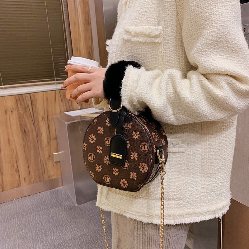 Flower Patterned Sling Bag with Leather and Plastic Material. Can be worn as a Top Handle Bag.