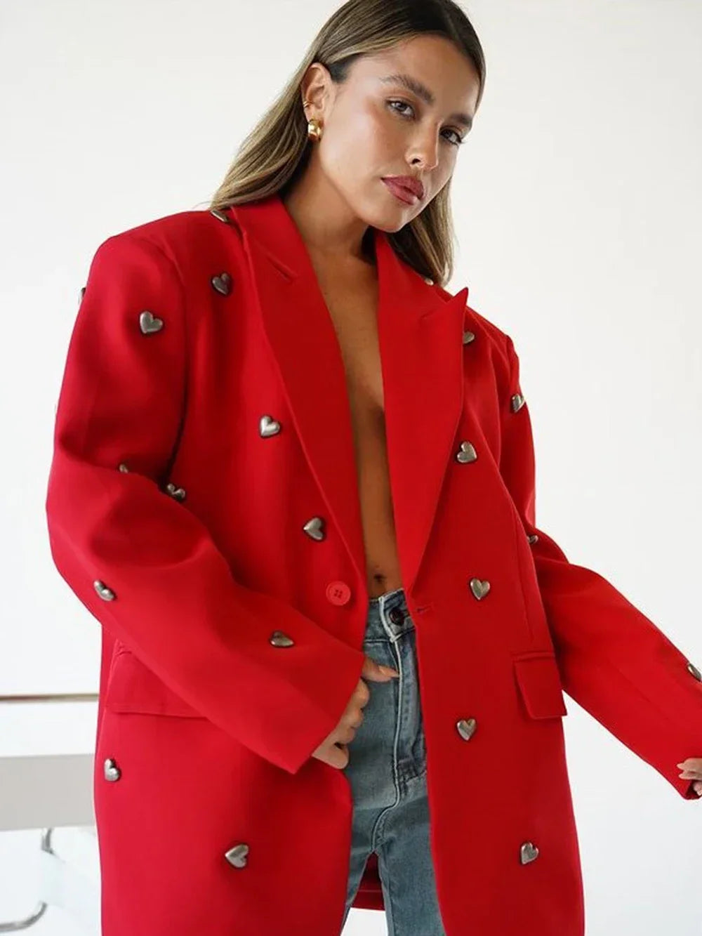 Elevate your style with the Be Loved By You Blazer. Adorned with delicate appliques, this blazer is sure to make a statement. Made from high-quality polyester, it offers a comfortable and loose fit. Perfect for any occasion, this blazer adds a touch of elegance to your wardrobe.