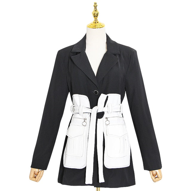 Cotton Polyester Patchwork Pattern Sashes Decoration Notched Blazer