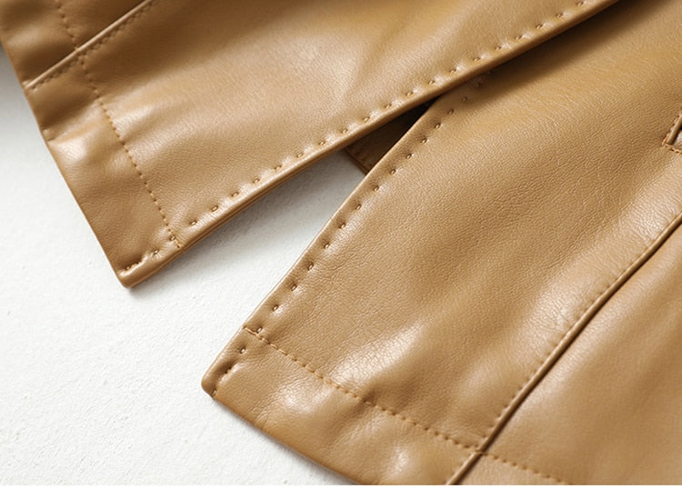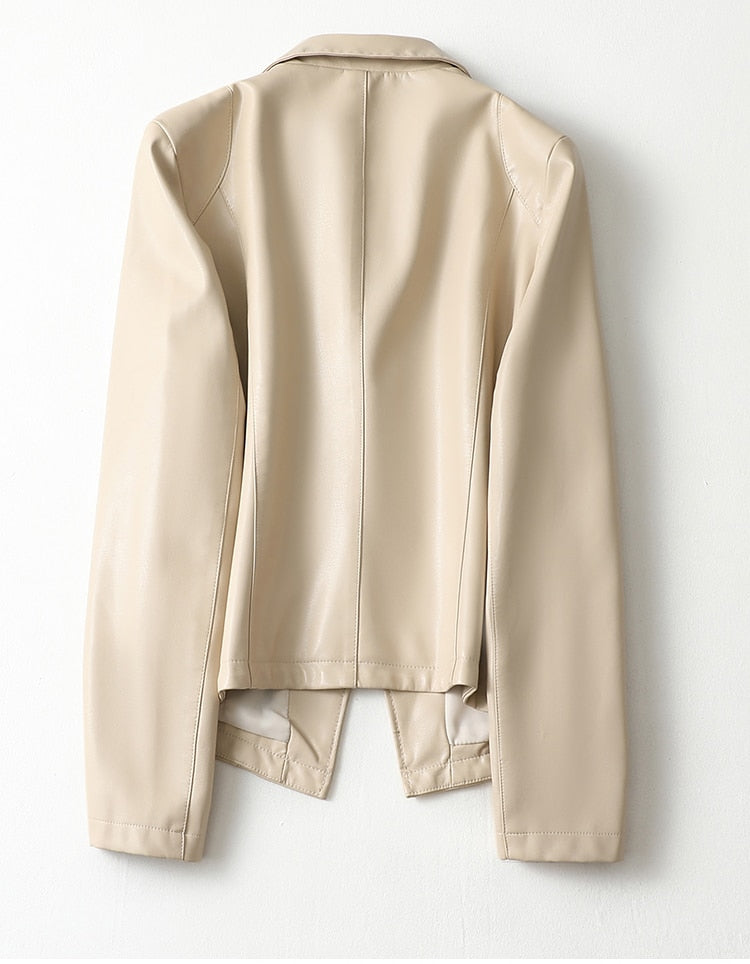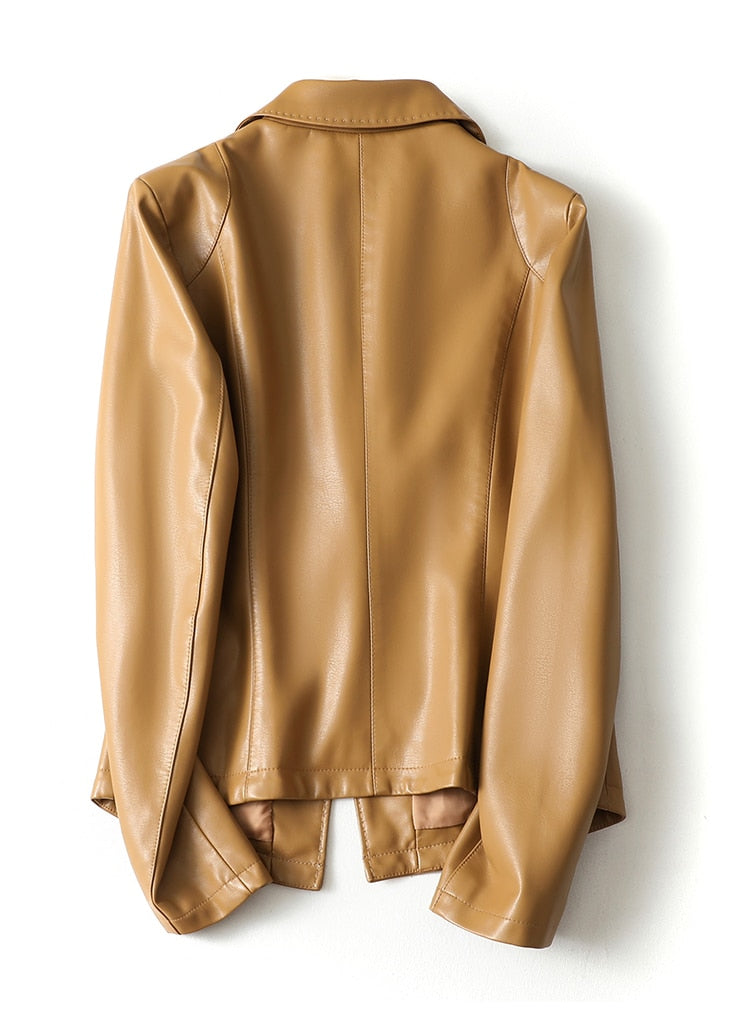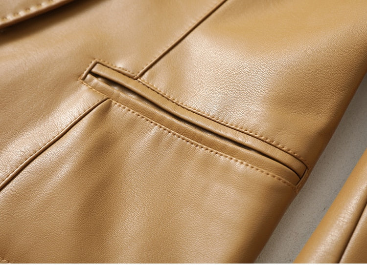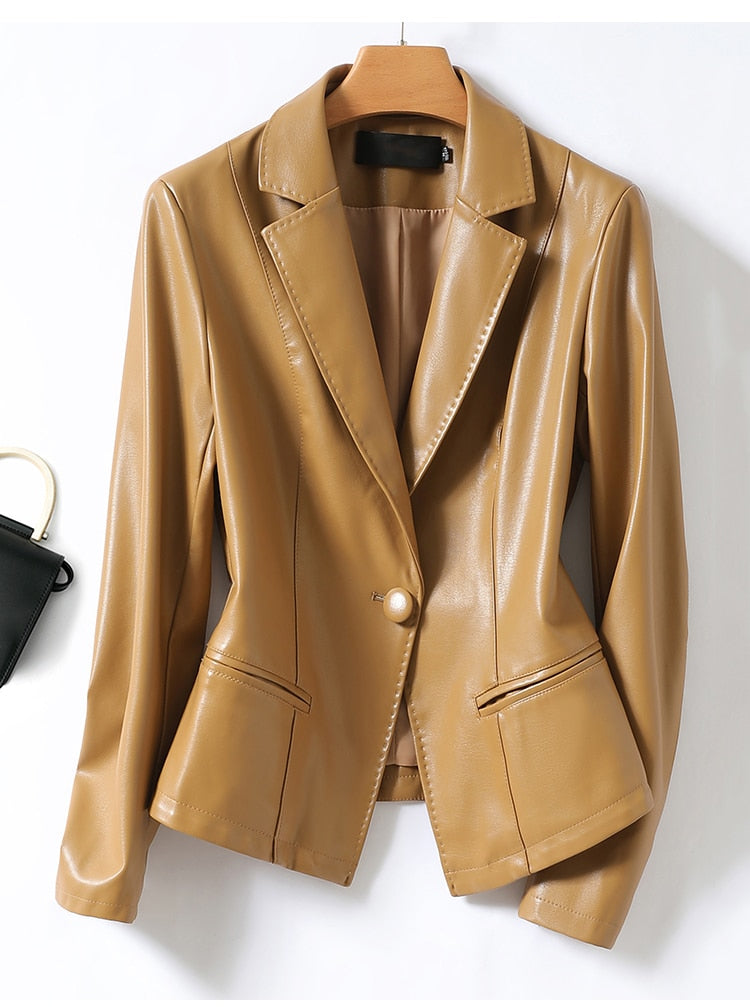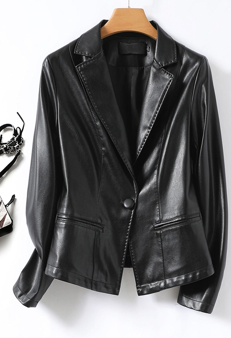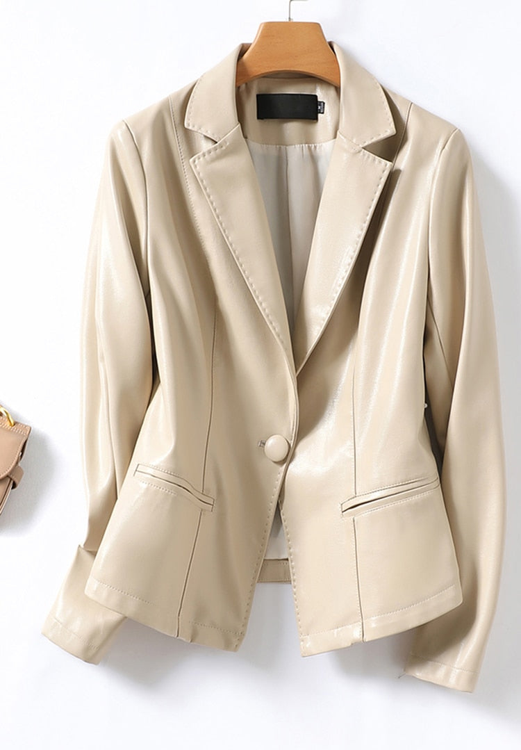 A great looking, practical, and stylish women's blazer, this jacket can be worn for a variety of occasions. The faux leather material looks and feels great, whereas the single button closure makes it easy to adapt to your personal style. The flattering shape makes it a flattering addition to any wardrobe. A great choice for work, this jacket is also a good choice for casual outfits.