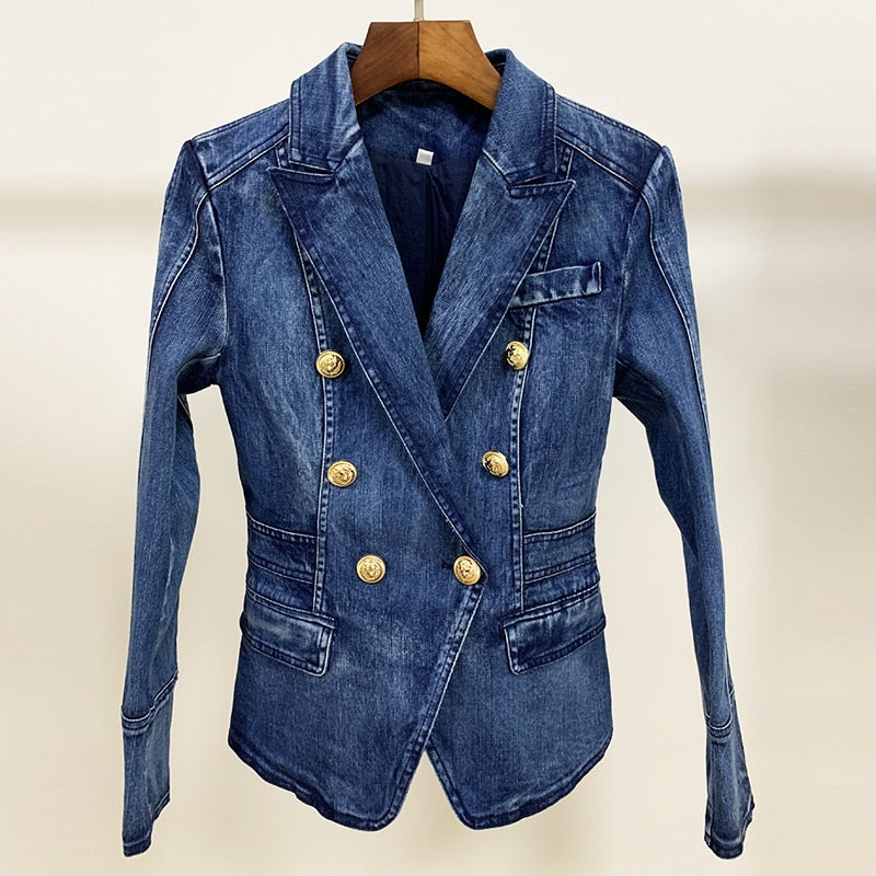 Polyester Cotton on Double Breasted Notched Collar Blazer