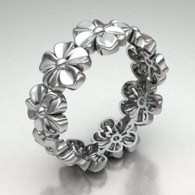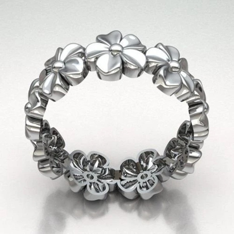 Silver Floral Chain Style Ring Made From Zinc Allot Material