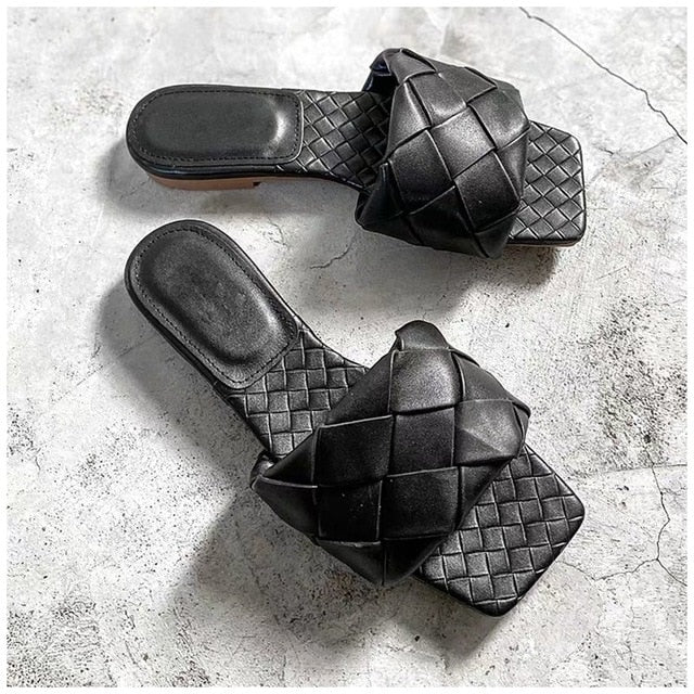 Weaved Patterned Slip On Flat Sandal