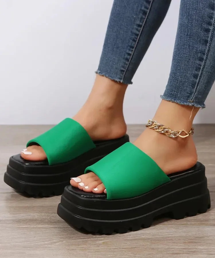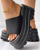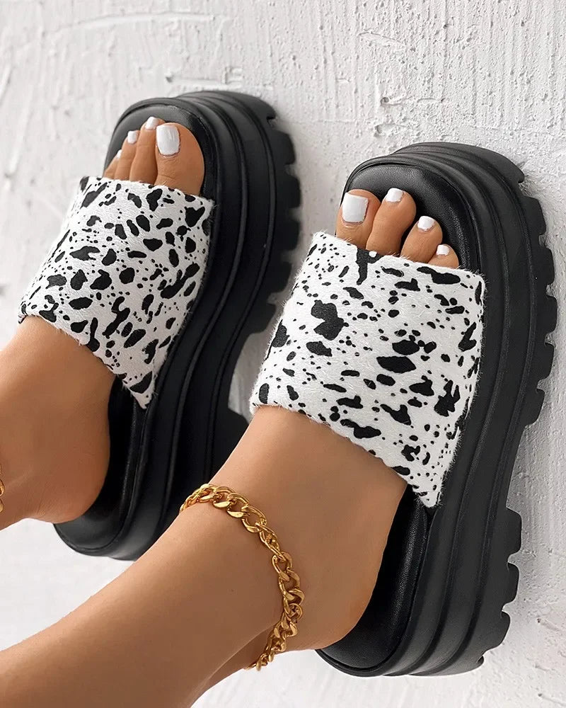 Make a bold statement with the Drama Doll Platform Sandals. Crafted from luxurious microfiber leather, these sandals feature a striking solid and leopard pattern that commands attention. Designed for those who embrace fearless fashion, they add height and attitude to any look with their daring platform silhouette.