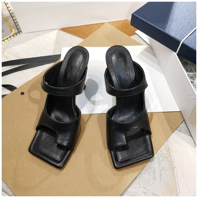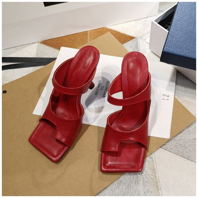 Solid Colored Squared Toes Microfiber Slip-On Pumps Sandal