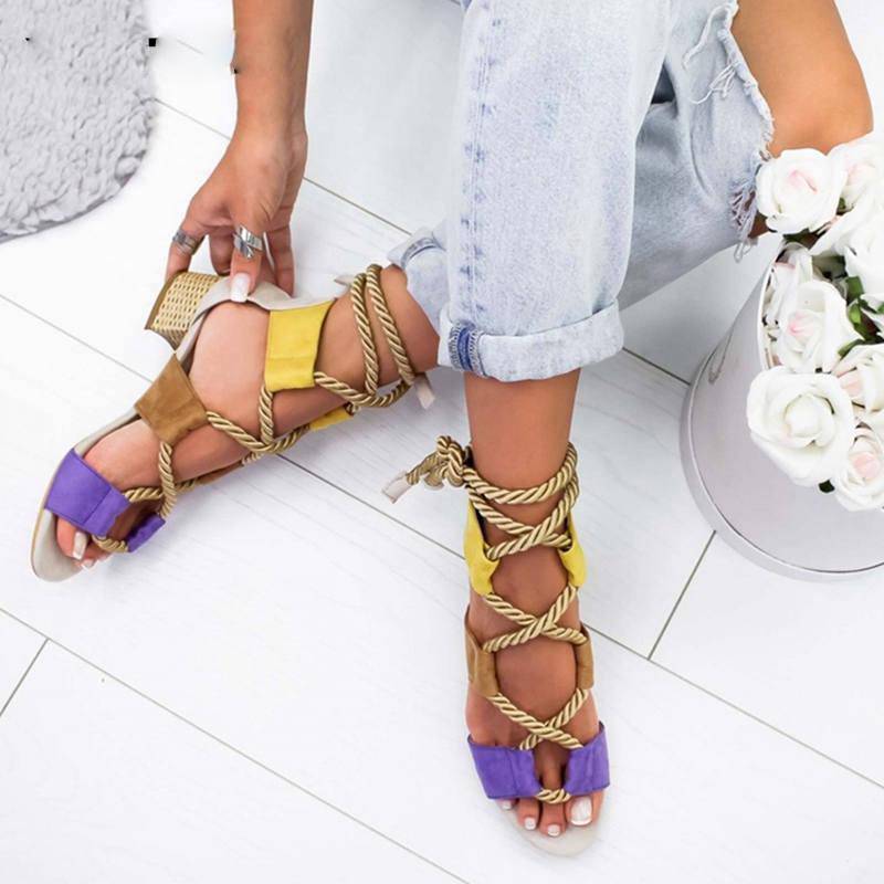 Colorful Cane Gladiator Medium-Heeled Sandal with Unique Ankle Strap