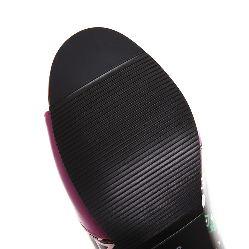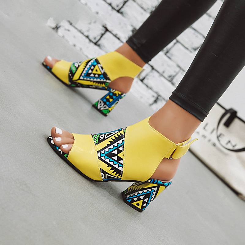 Opened Heels and Toes PU Leather Pumps with Ethnic Print Decoration