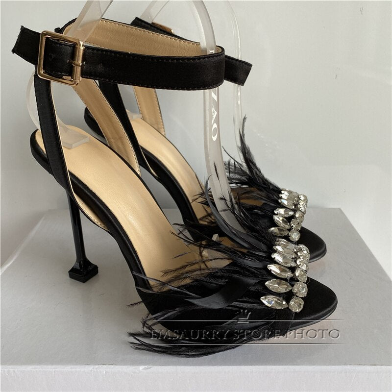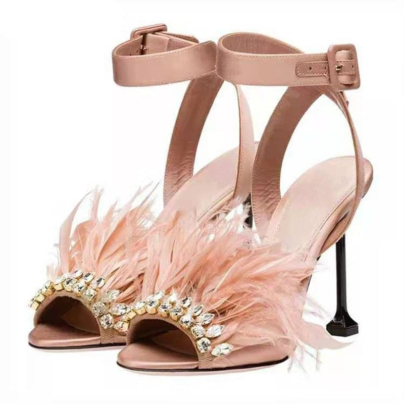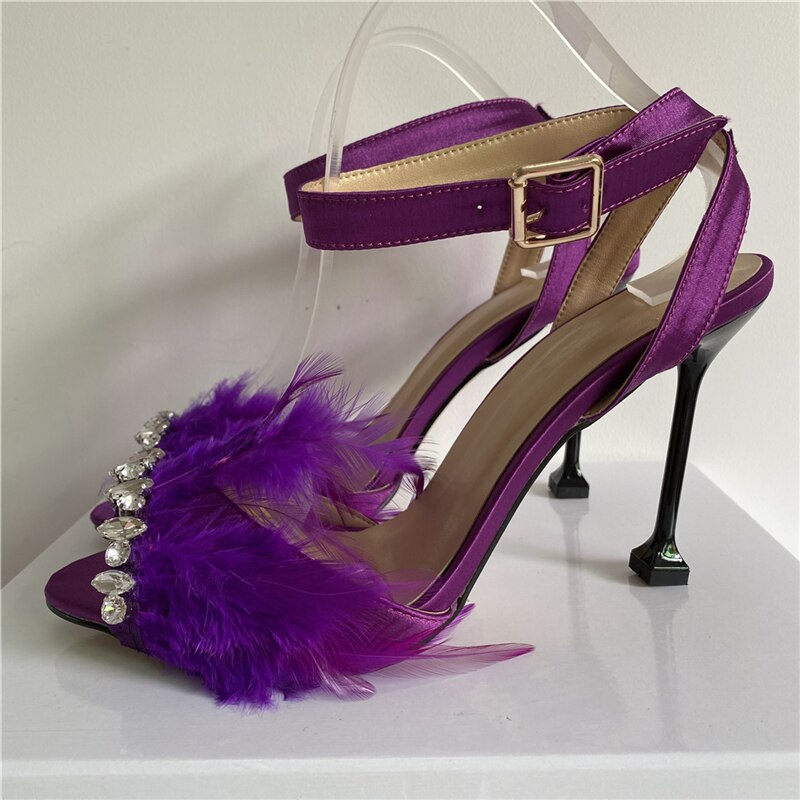 Welcome the season in these stylish Spring Festive Pump Sandals. Crafted from solid satin, these pumps feature a striking feather decoration to complete the look. Perfect for any occasion, these sandals will have you looking your best.