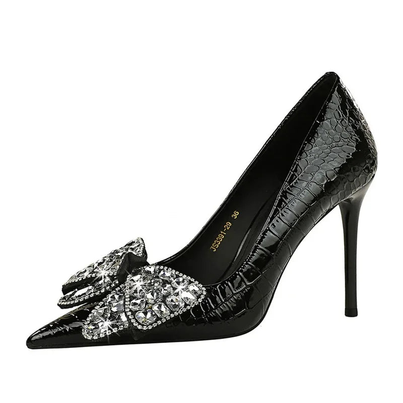 Unleash your confidence and make a statement with our A Complex Touch Stilettos! With a sleek pointed toe and unique bow and rhinestone embellishments, these PVC heels are the perfect addition to any outfit. Elevate your style and stand out from the crowd with these captivating stilettos.