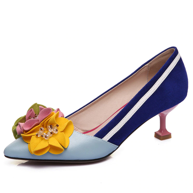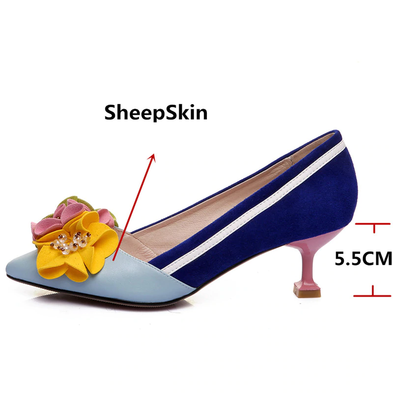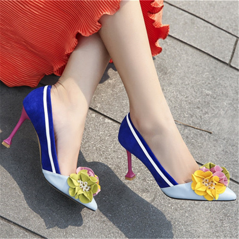 Genuine Leather on Pointed Toe Buckle Strap Thin Heels