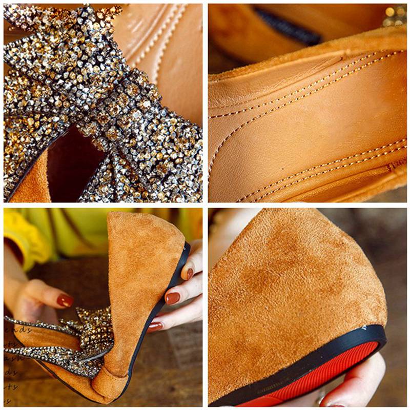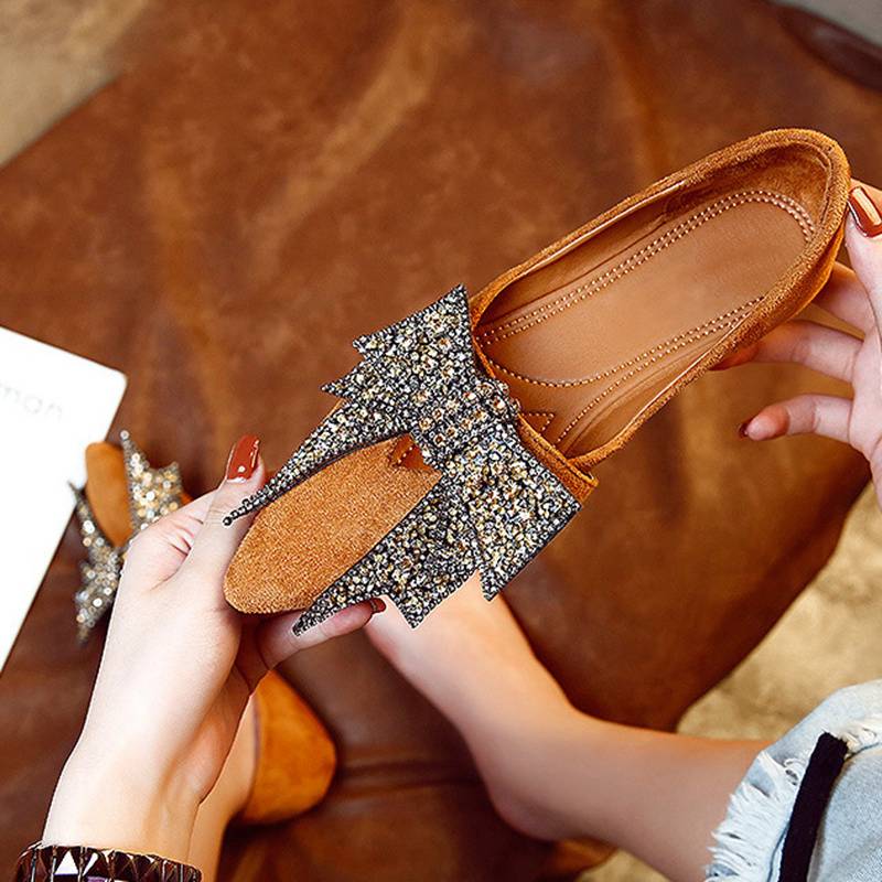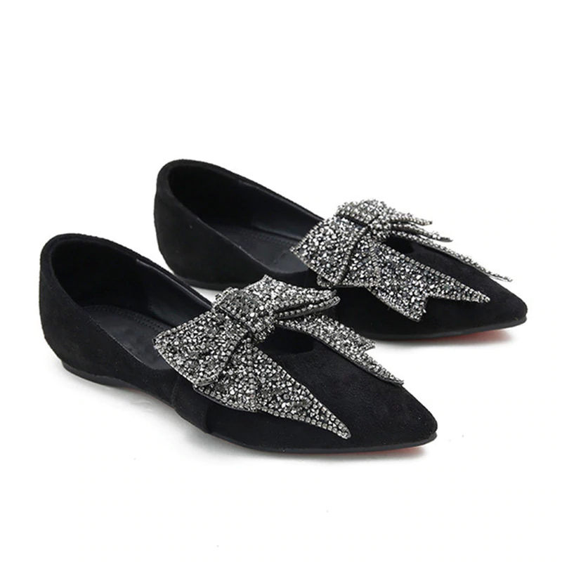 Elegant Bling Crystal Bow Tie Pointed Toe Women Flat Shoes