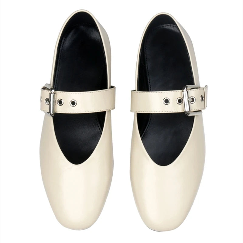 Unleash your fearless side with the Glitter In Veins Flats Shoes. These ballet flats feature a bold buckle strap closure that adds edge to classic elegance, making every step shine with confident sparkle. Perfect for those who dare to stand out.