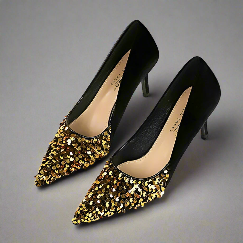 Elevate your party look with the Party Don't Stop Pump Shoes! These stunning heels feature a sequined cloth upper for a touch of glam, and a pointed toe shape to add a sleek and sophisticated touch. The rubber outsole provides comfort and durability, making these the perfect choice for dancing all night long!