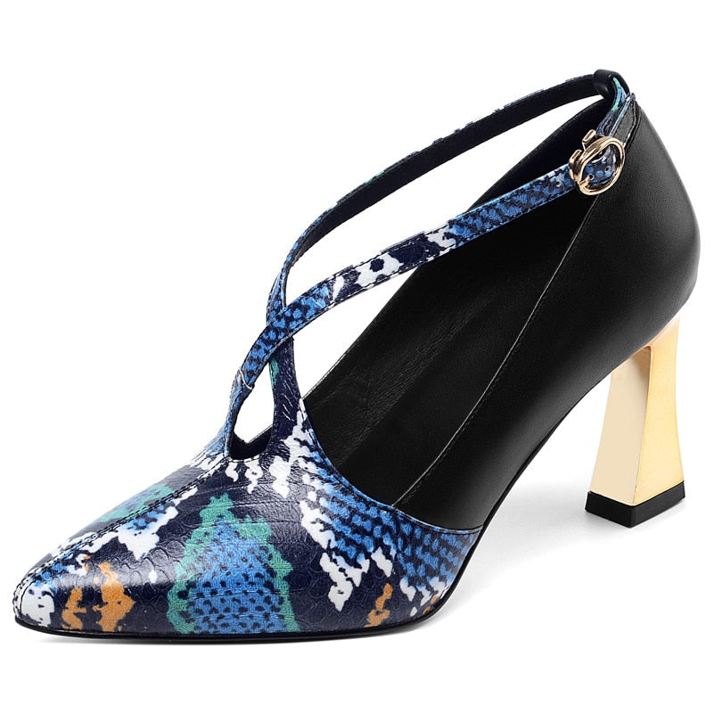 Cow Leather on Pointed Toe Buckle Straps Strange Heel