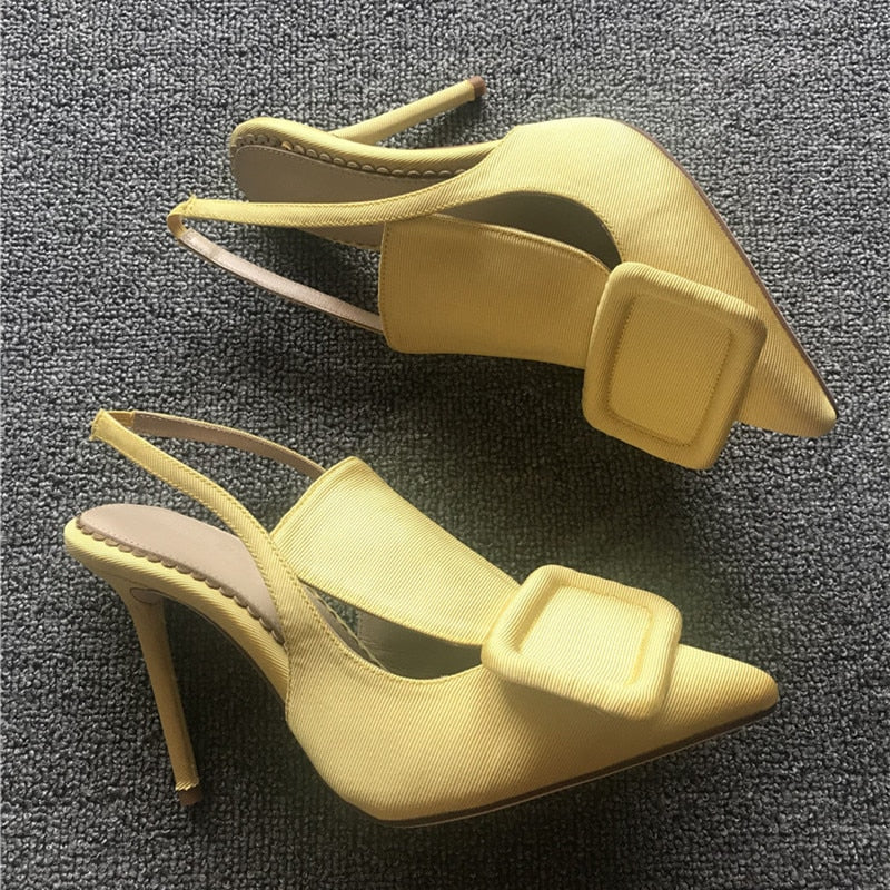 Genuine Sheepskin Leather Rubber Satin Solid Patterned Elastic Slingback Heeled Sandal