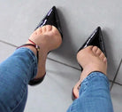 The Toxic Elegance Stilettos feature a sleek pointed toe crafted from glossy patent leather, delivering a daring blend of sophistication and edge. These stilettos command attention with their sharp silhouette, perfect for making a bold statement wherever you go.