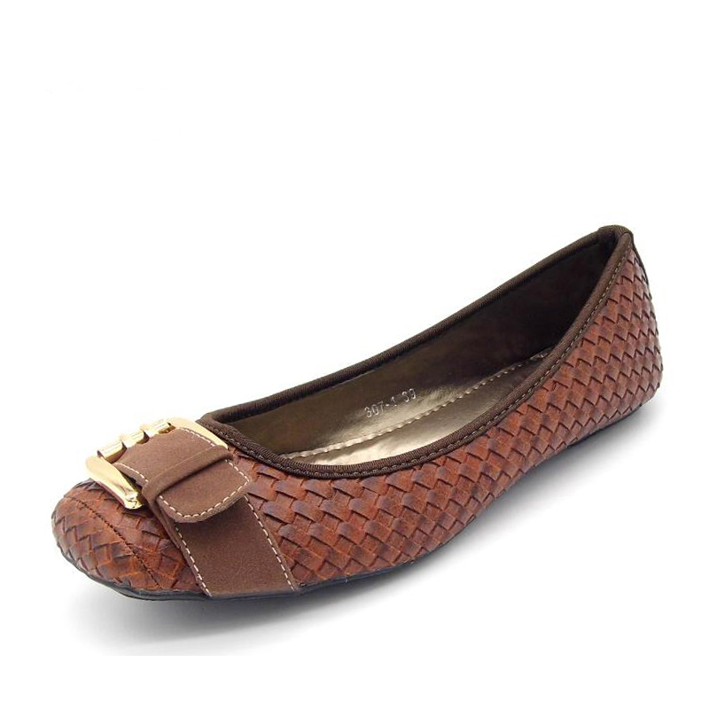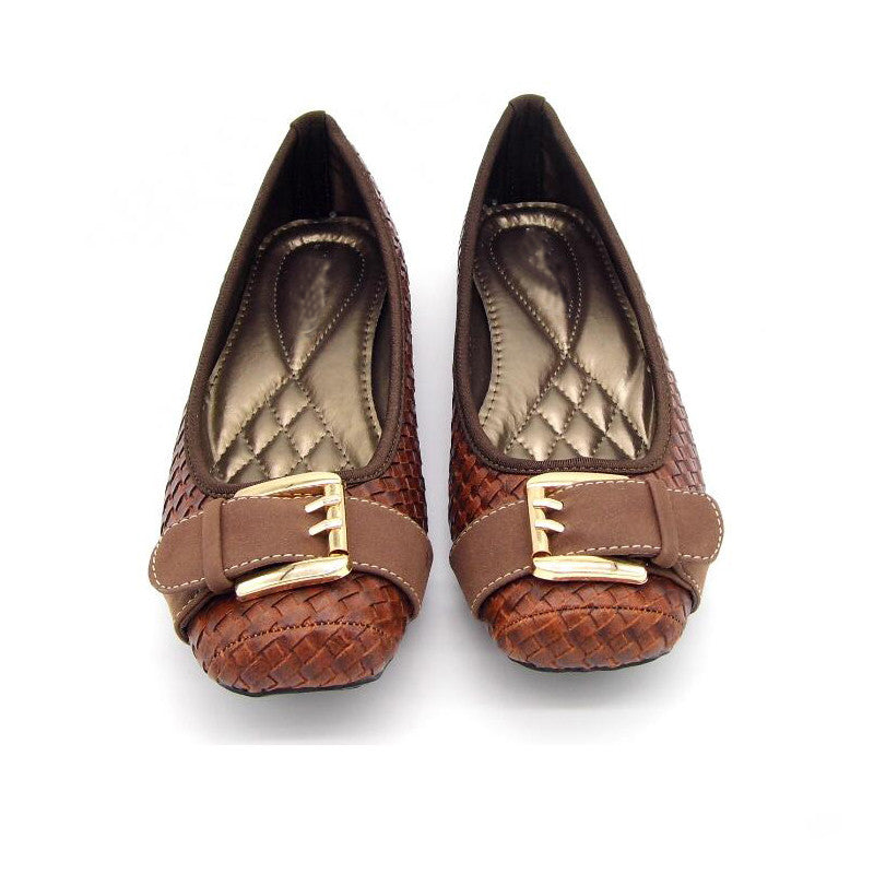 PU Leather Buckle Decoration Ballet Flat Shoes