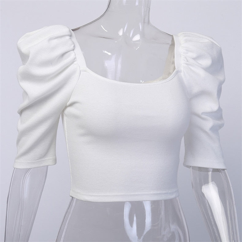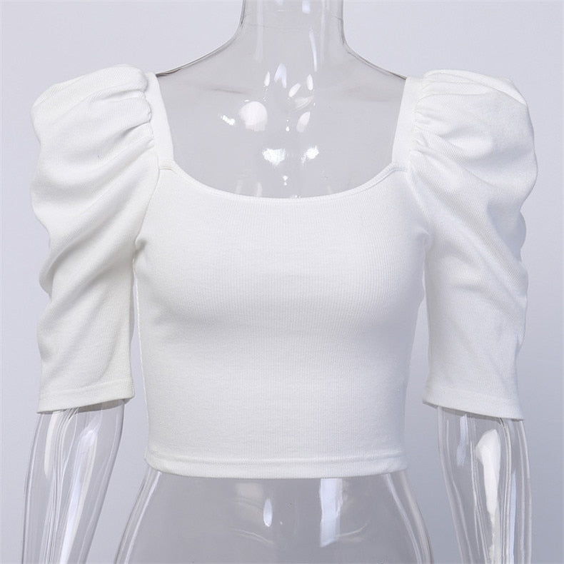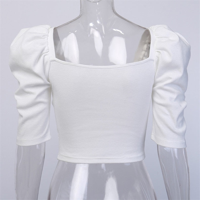 Casual Square neck Slim Fit Puff Sleeve Women Blouse
