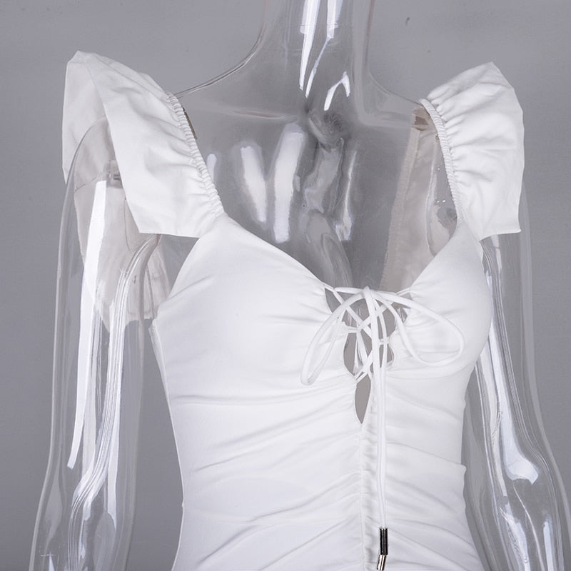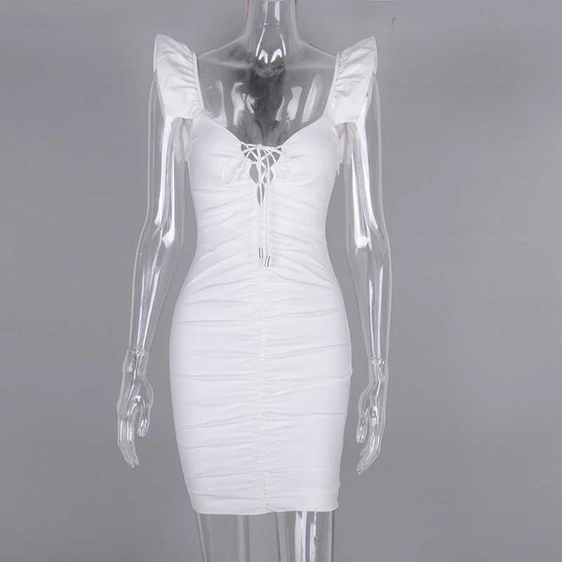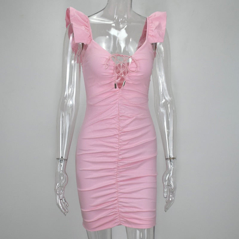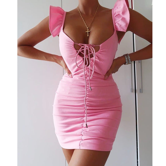 Deep V-Neck Cut Out Lace Up Butterfly Sleeve Women Mini Dress