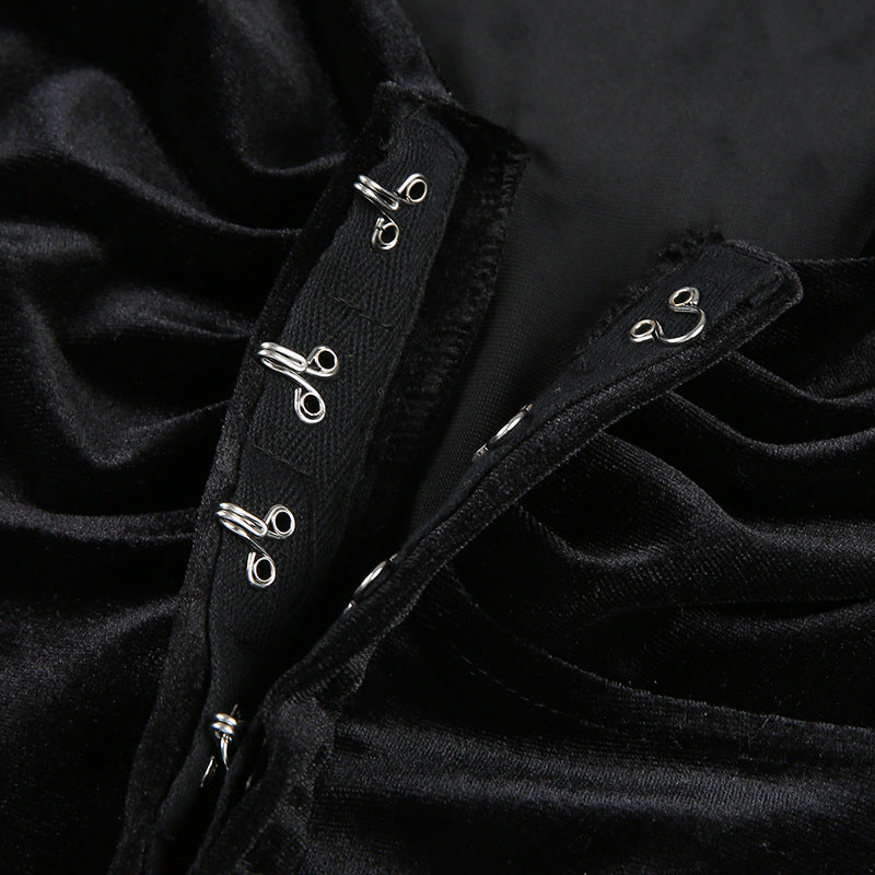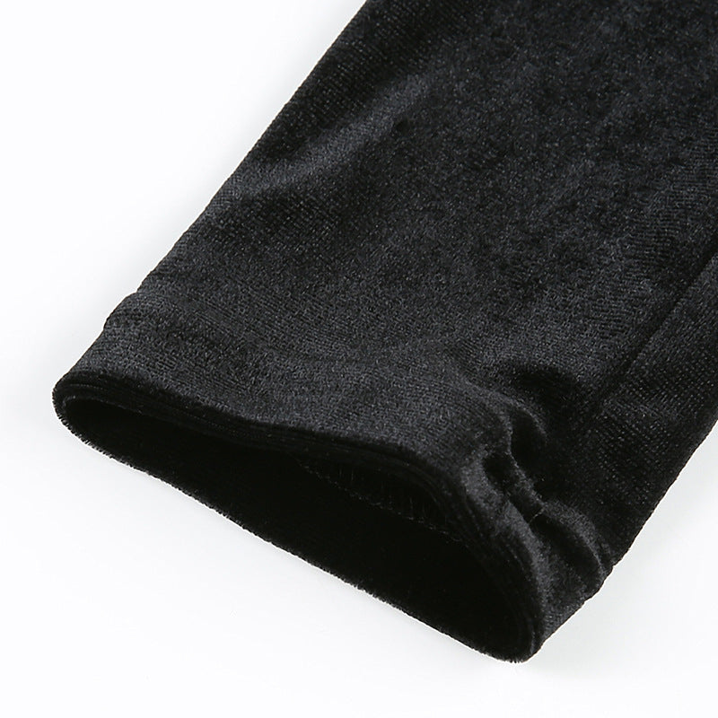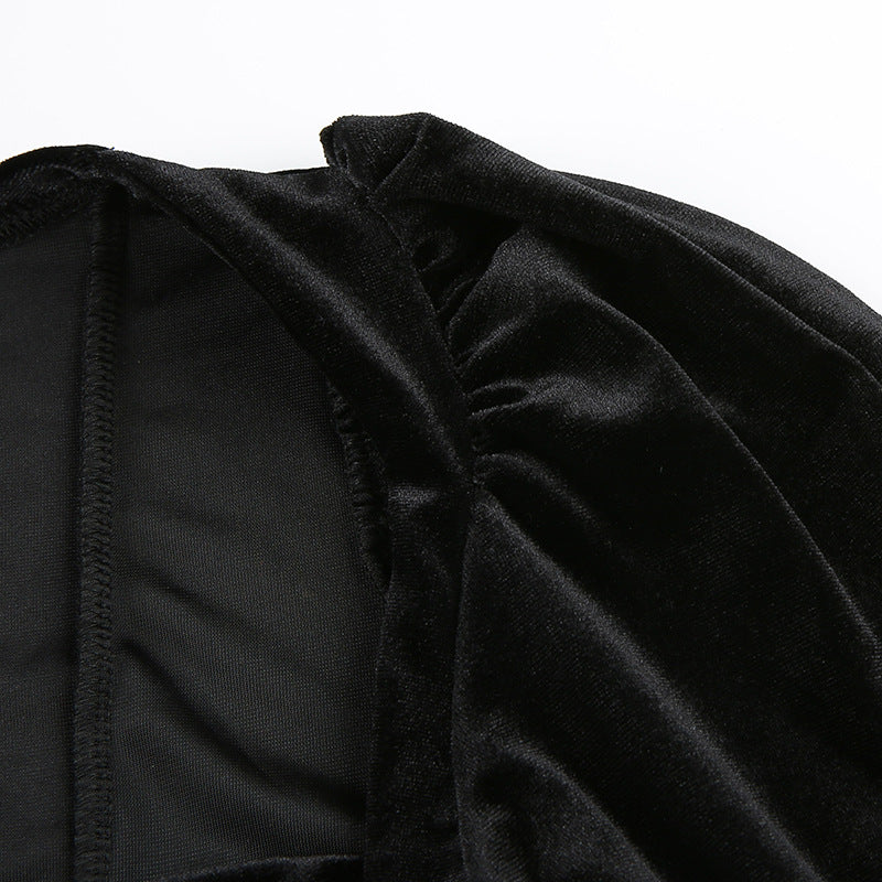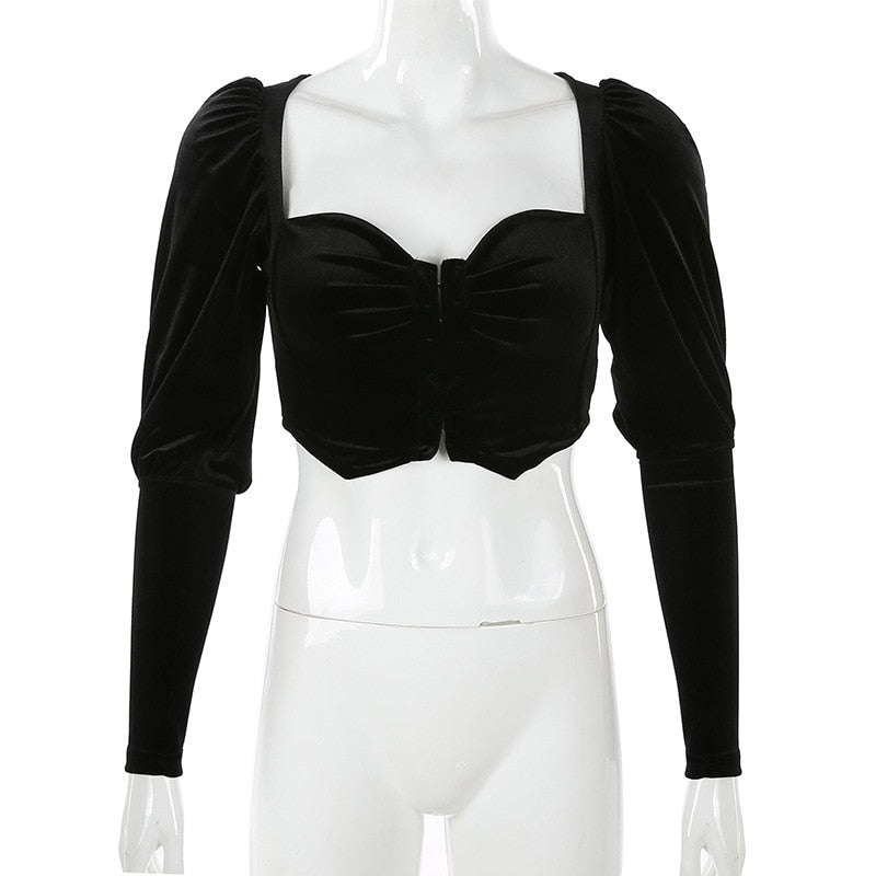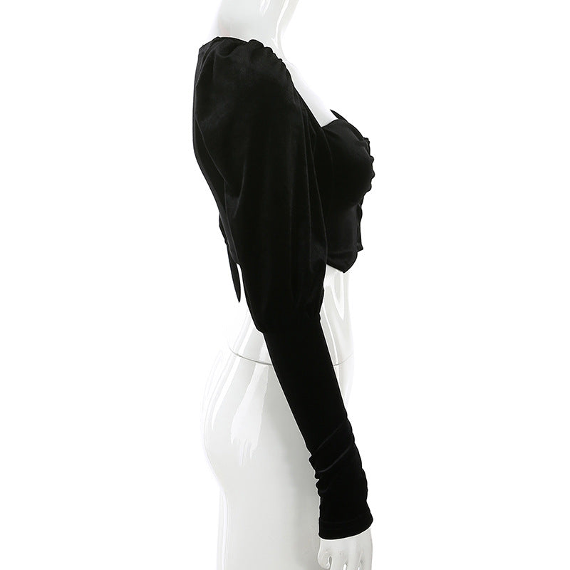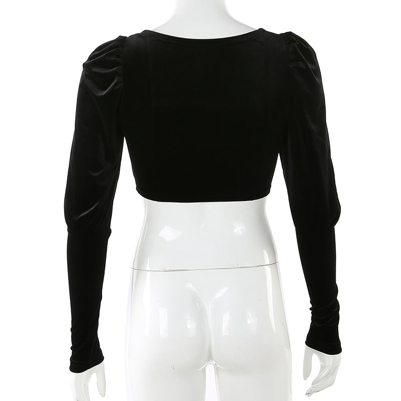 Flannel Velvet Deep V-neck Short Puff Sleeve Tops