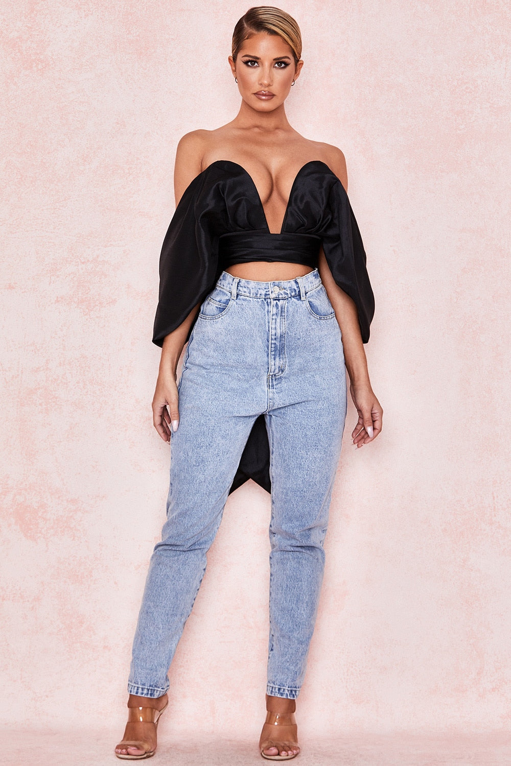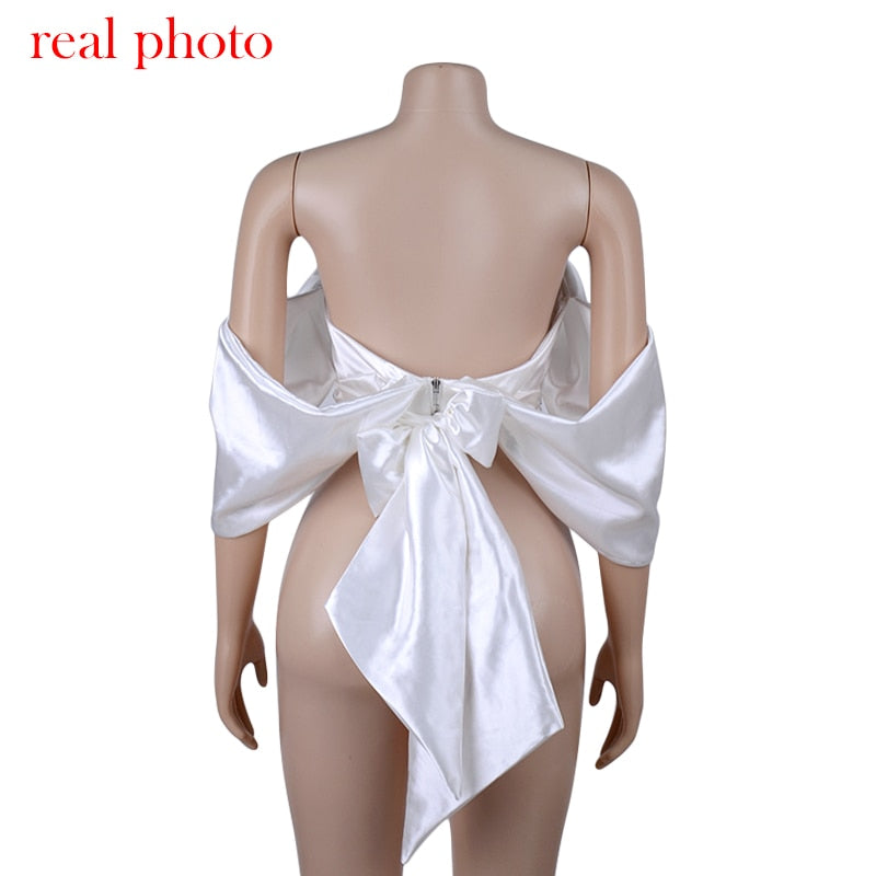Satin Deep V Off Shoulder Backless Women Crop Top