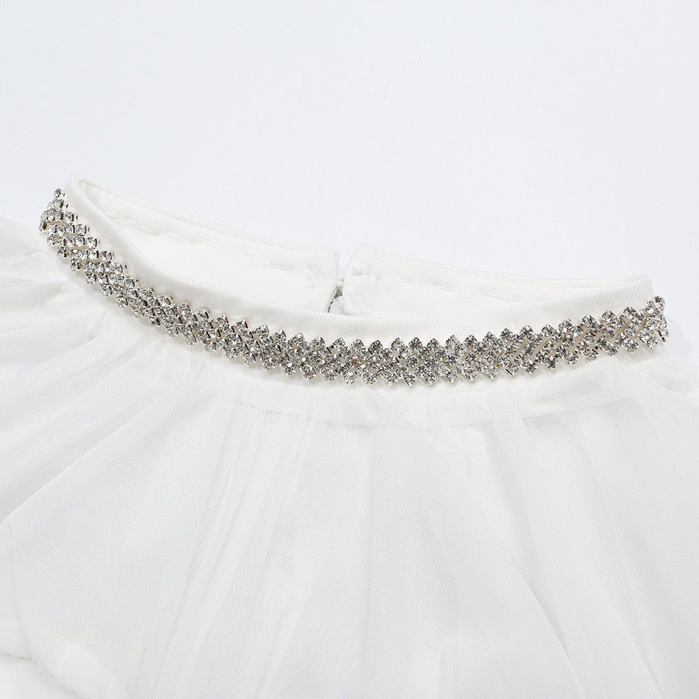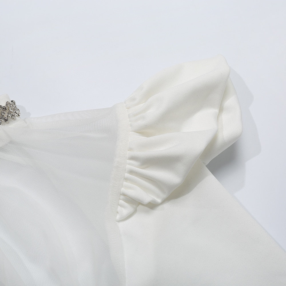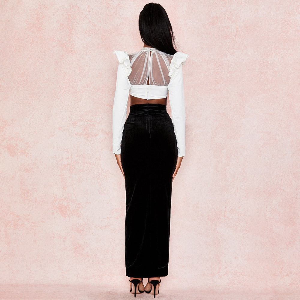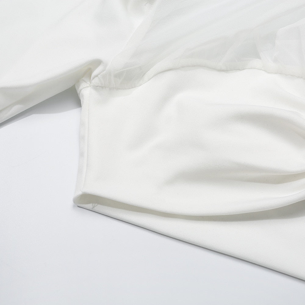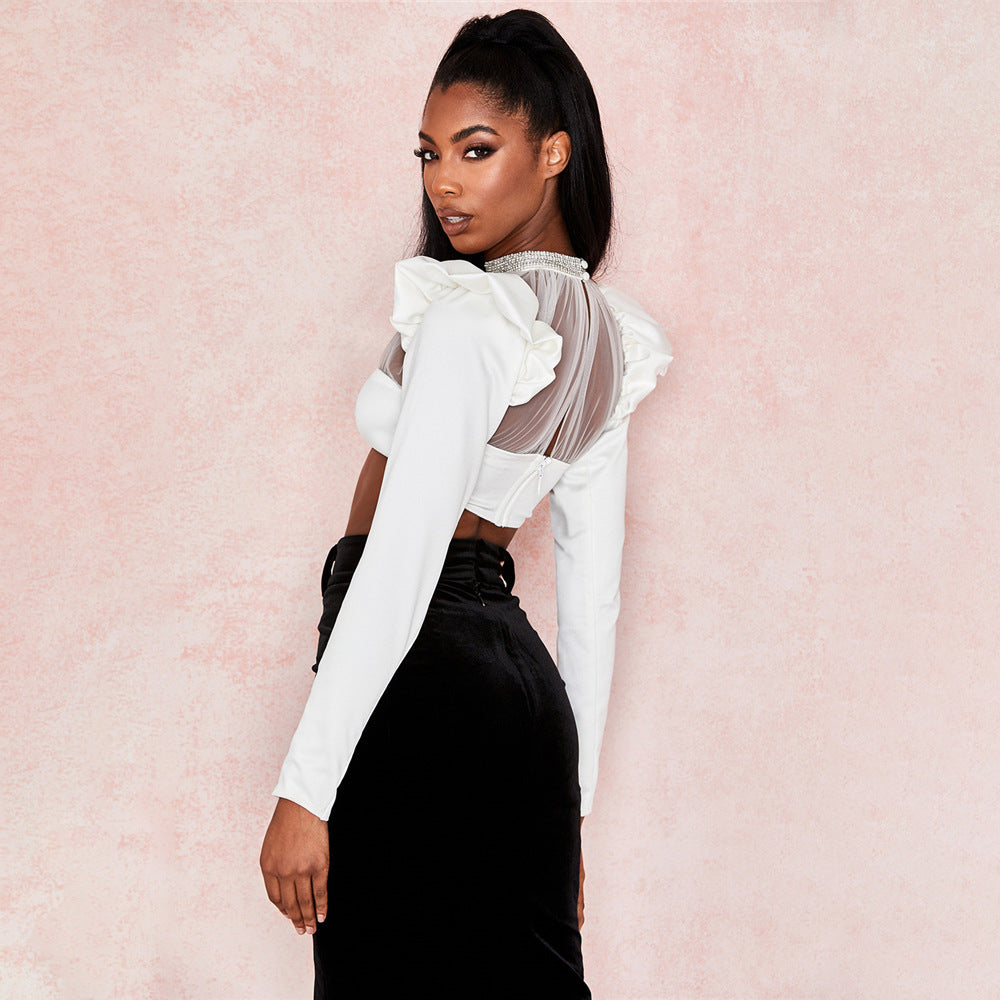 Sheer Mesh Splice Ruffle Sleeve Women Crop Top