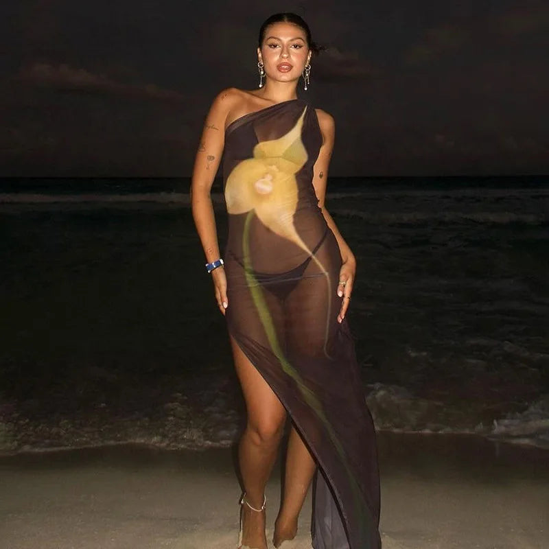 Capture the essence of summer with our Ocean Breeze Reverie Maxi Dress! The diagonal collar neckline adds a touch of sophistication while the hollow out decoration creates a sexy and alluring look. Perfect for a day at the beach or a night out on the town. Don't miss out, add it to your wardrobe today!