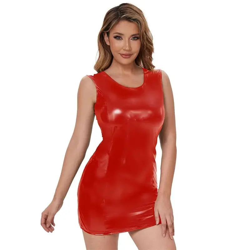 Enhance your wardrobe with this mini dress. Its solid design and backless, sleeveless style will catch everyone's attention. Made with sturdy PVC and polyester, this mini dress will make you feel confident and stylish. Perfect for a night out!