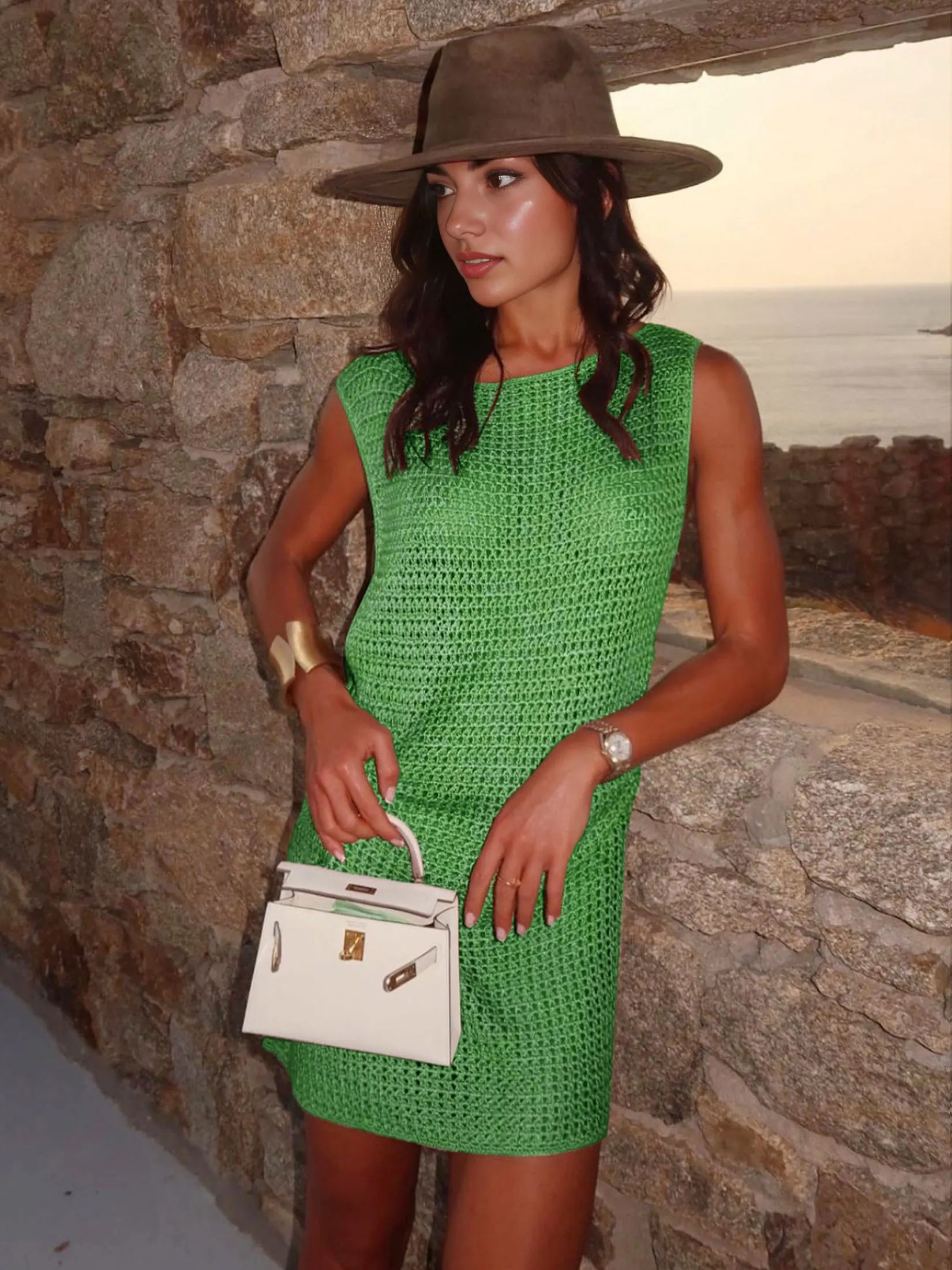 Transform into a vision of paradise with our Sunset Paradise Mini Dress! Featuring a delicate O-Neck lined with intricate crochet details, this mini dress is made of lightweight, breezy polyester for a comfortable and stylish look. Perfect for any occasion, this dress will leave you feeling effortlessly elegant and chic.