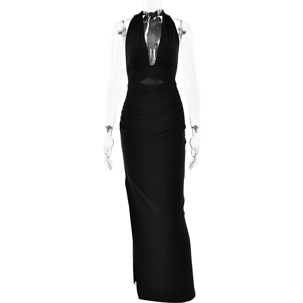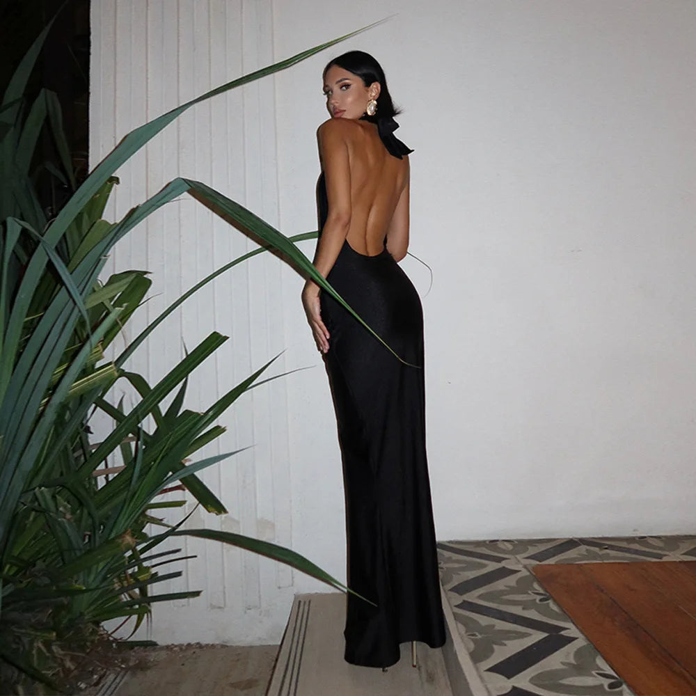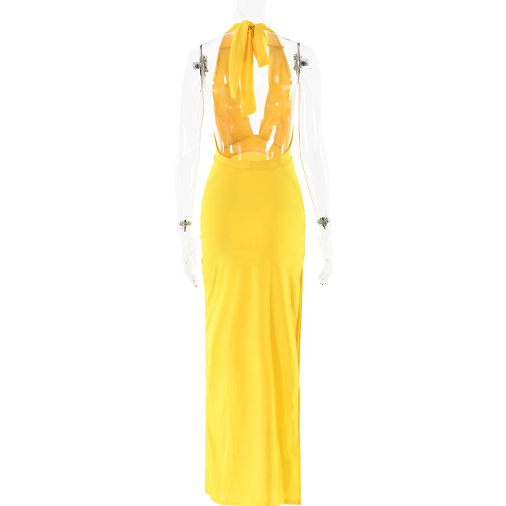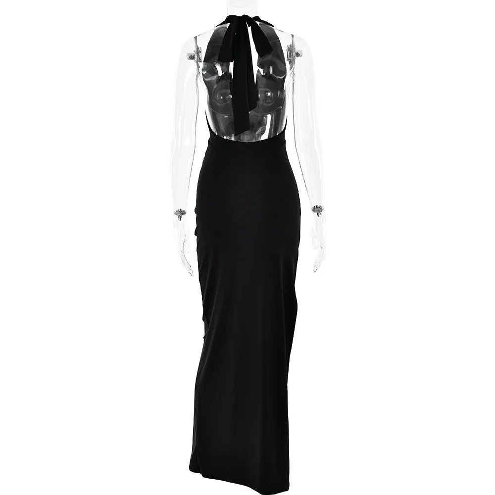 Discover the perfect blend of comfort and elegance with this long dress. Made with polyester and spandex, this solid-color dress features a stunning backless design that will turn heads wherever you go. Say goodbye to uncomfortable dresses and hello to effortless style.