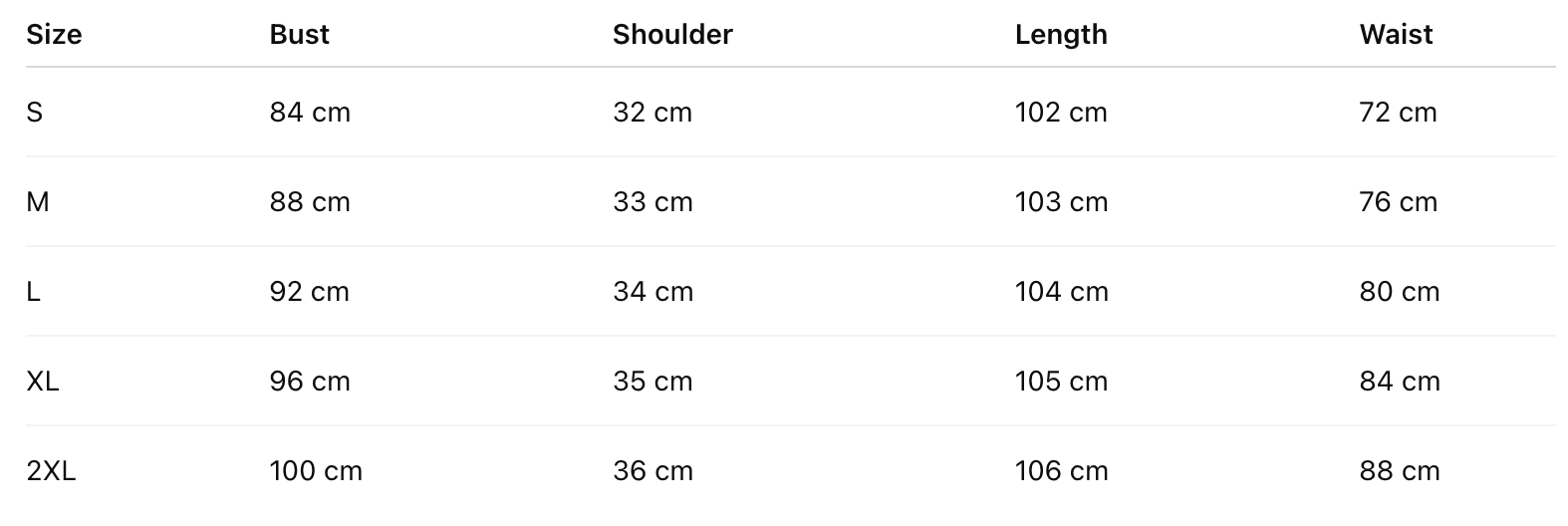 Please Check the Size Below or The Image Gallery for the Size Chart Reference.