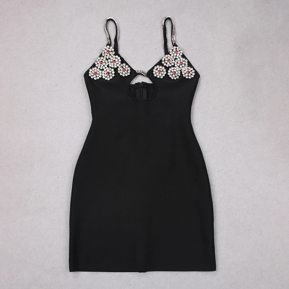 Get ready to wow in the Wave's Heartbeats Mini Dress! Featuring a stunning V-neckline and eye-catching rhinestone decoration, this dress is sure to turn heads. Made from a comfortable blend of nylon and spandex, this mini dress will flatter your figure and make you feel confident. Elevate any occasion with this must-have dress!