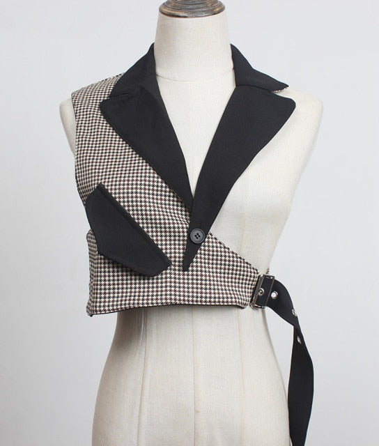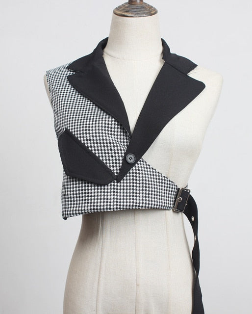 Cotton Polyester Crop Blazer Top with Cut Out and Notch Lapel Design