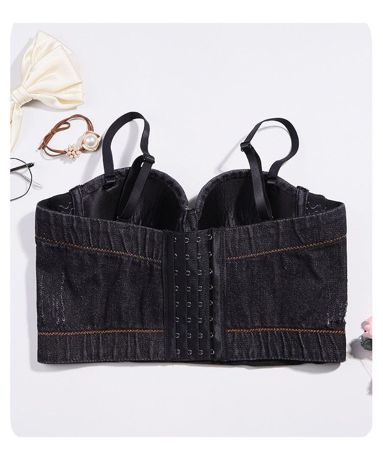 Adjustable Strap Denim Bustier with Snowflakes Beads Decoration