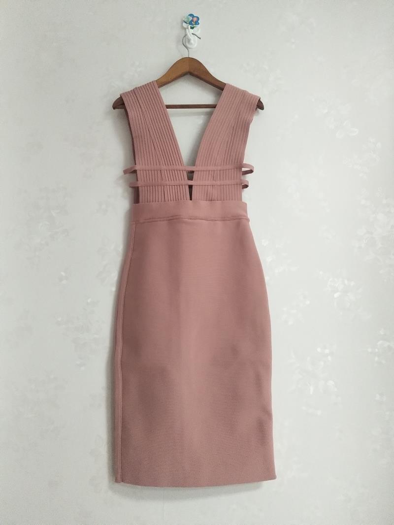 Nylon Rayon on Beading V-Neck Sleeveless Bodycon